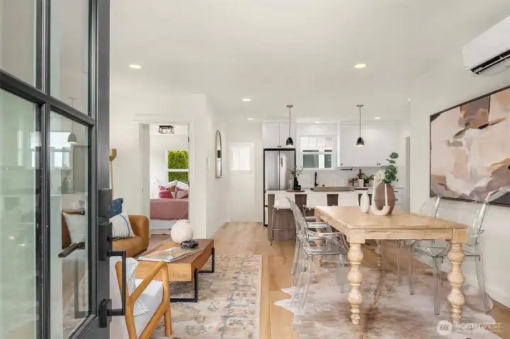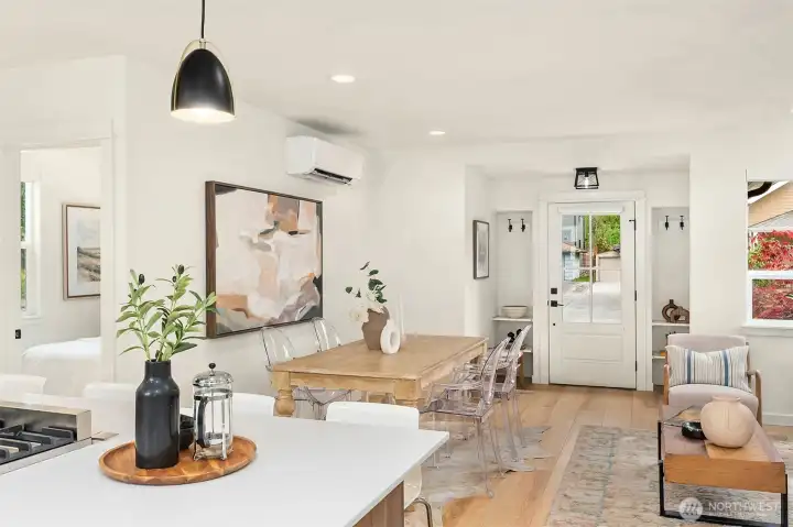 Set in the heart of Maple Leaf, this fully updated home blends classic Seattle character with a clean, modern finish. Thoughtfully remodeled throughout, it features custom cabinetry, designer tile and high-end fixtures, centered around a chef’s kitchen with a premium gas range, designed for both everyday living and entertaining. The main level is bright and inviting, with great natural light, an easy flow and functional built-ins. Downstairs features a spacious flex area with its own mini kitchen, offering ideal separation for a home office, gym, media room, or bonus living space, along with ample storage to keep things organized. Outside, enjoy a manageable yard with space to relax, garden, or host, all while maintaining a sense of privacy. Just minutes to parks, playfields, walking trails and neighborhood favorites, with easy access to I-5 for a smooth commute. Turnkey, well-designed and versatile, this is the kind of Maple Leaf home buyers have been waiting for.