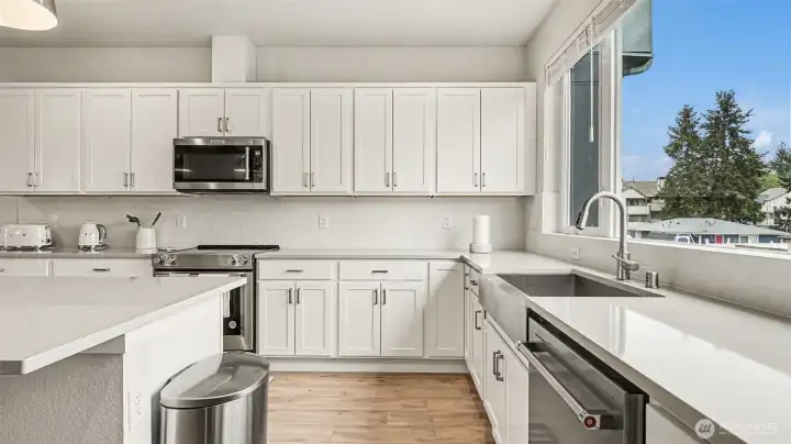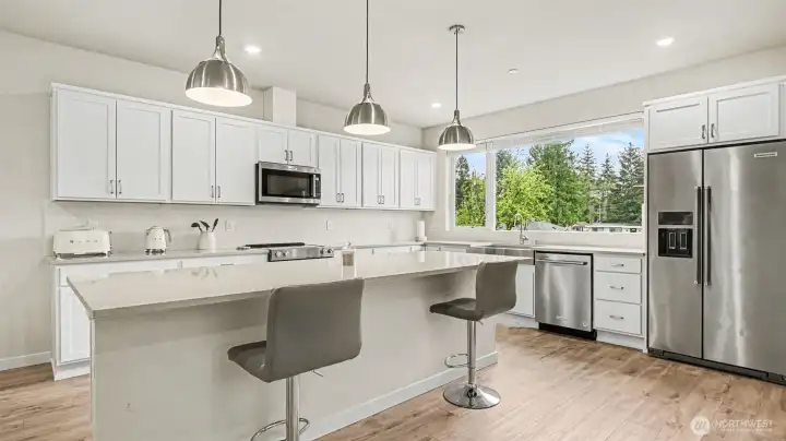 Better than new, this 2024-built modern corner-unit townhome by Pulte offers 4 beds, 2.5 baths, and a large 2-car tandem garage with low HOA dues. The main level features a stylish kitchen with a spacious pantry flowing into an entertainment-ready great room. Enjoy a private covered patio off the great room, perfect for relaxing or for the coffee sip. Upstairs includes 3 bedrooms, highlighted by a serene owner’s suite with 5 piece spa like bath. Ideally located minutes from I-5/I-405, Ash Way Park and Ride, and Mill Creek Town Center. Just step outside community to play in Martha Lake for summer fun. Modern, convenient, and move-in ready!