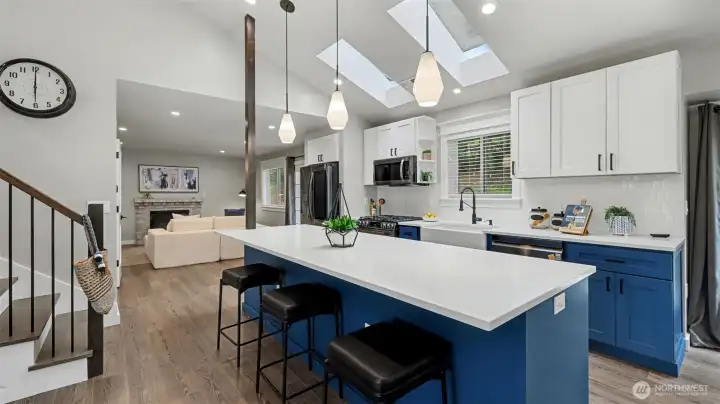 Open-concept living, dining and kitchen