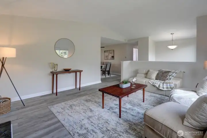 Light-filled and beautifully updated three bedroom mid-entry home nestled at the end of a quiet cul-de-sac. Built in 1978 and completely remodeled inside, this home shines with fresh paint and new laminate hardwood flooring throughout. The spacious kitchen features stainless steel appliances, built-in microwave, double sink, and ample room for an eating area or future center island. Formal dining room flows seamlessly into the bright living room with vaulted ceiling and cozy wood-burning fireplace. Downstairs rec room could be converted to fourth bedroom if desired. And don’t miss the big, multi purpose storage room down here. Enjoy outdoor living on the expansive 17 x 19 ft deck with full railing and staircase, leading to a large, fully fenced backyard – perfect for pets, gardening, or entertaining. The yard is a standout feature with mature evergreens and plenty of space to make it your own. Oversize garage offers incredible functionality with a utility sink, abundant shelving, and a hidden storage room. A rare combination of space, updates and privacy in a desirable cul-de-sac setting - this home is move-in ready and a must see!