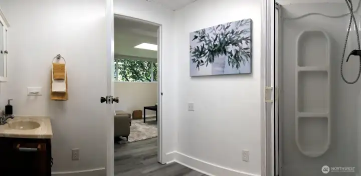 Downstairs spacious bathroom.