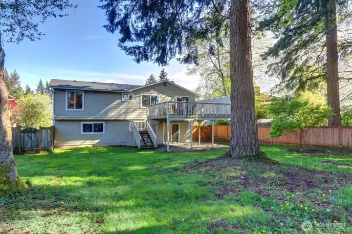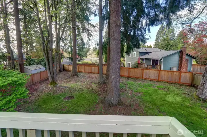 Gorgeous 17 x 19 ft deck overlooking huge backyard.