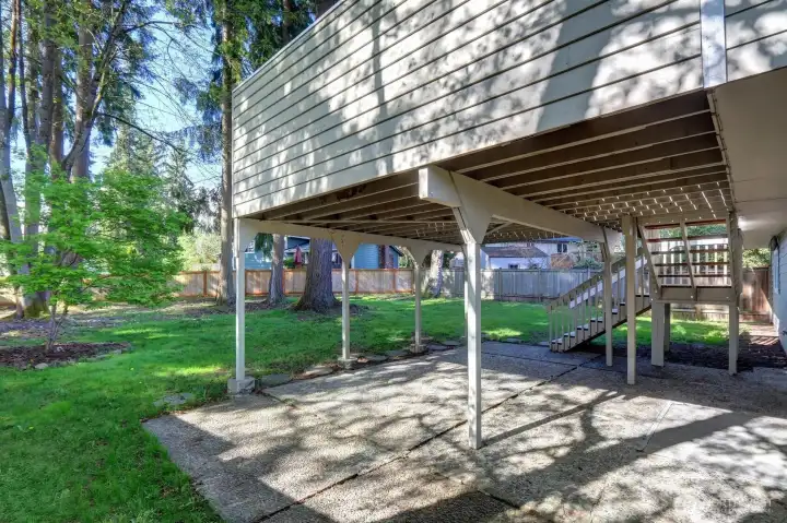 Note the nice privacy wall and the steps to access backyard.