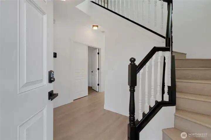 Beautiful former model home in the desirable East Pointe community of Bonney Lake with low HOA dues and thoughtful upgrades throughout. This spacious 1,881 sq ft townhouse offers 4 bedrooms and 2.5 baths, combining comfort, functionality, and style. The main level features durable laminate flooring, a versatile office/bonus room, and a convenient half bath. The open kitchen is designed to impress with quartz countertops, a full-height tile backsplash, stainless steel appliances, and a pantry for added storage.Enjoy year-round comfort with air conditioning and a cozy gas fireplace. Upstairs, the generous primary suite includes an extra-large walk-in closet, ceiling fan, and a private en-suite bath with a soaking tub and separate shower—perfect for relaxing at the end of the day.Additional highlights include wiring for surround sound and security, a fully fenced corner lot, and low-maintenance living with the HOA covering front yard care and irrigation. Ample parking is a bonus with a long driveway and attached 2-car garage. This home offers the perfect blend of space, upgrades, and convenience in a sought-after location!