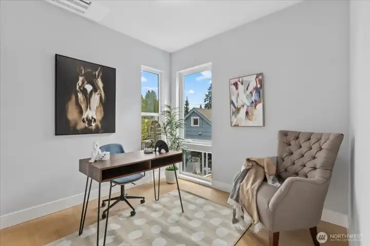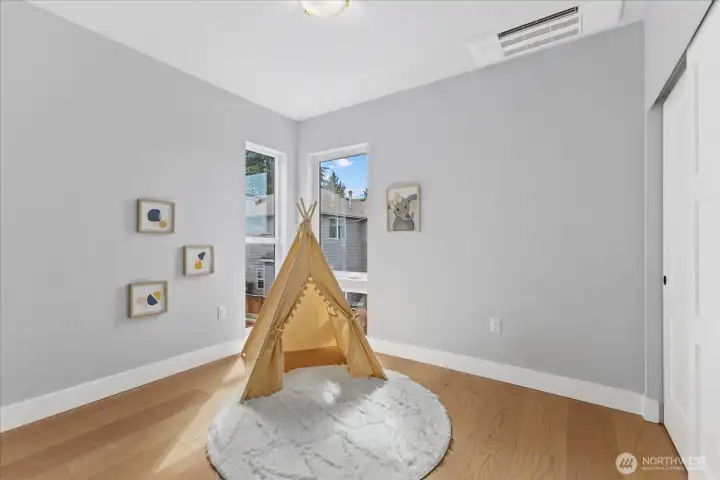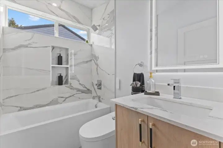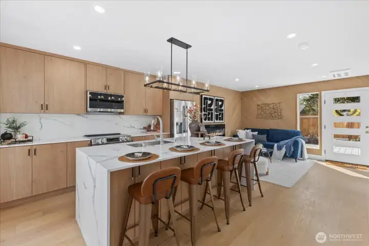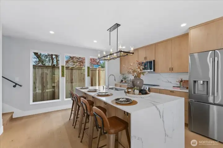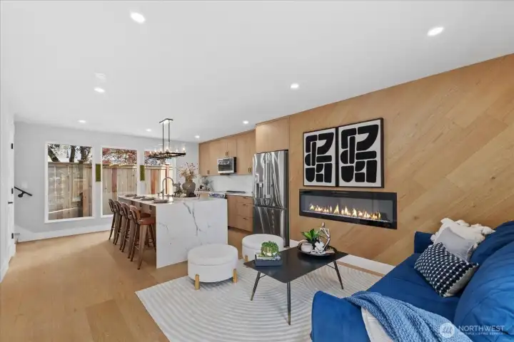 Welcome to this contemporary 3 bed, 2.5 bath house, where urban living meets modern comfort. Step into the living space flooded with natural light and custom wood accent wall. The open-concept design seamlessly integrates the living, dining, and kitchen areas, creating a spacious and inviting atmosphere. The gourmet kitchen features state-of-the-art appliances, ample storage space, and a stylish/large island. Retreat to the primary suite, complete with its own ensuite bathroom and large closet, providing a nice place to unwind. The second and third bedrooms are flooded with a ton of natural light and easy access to the second full bathroom, offering convenience and comfort. Additional highlights include in-unit laundry and second garage!