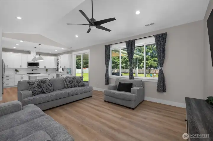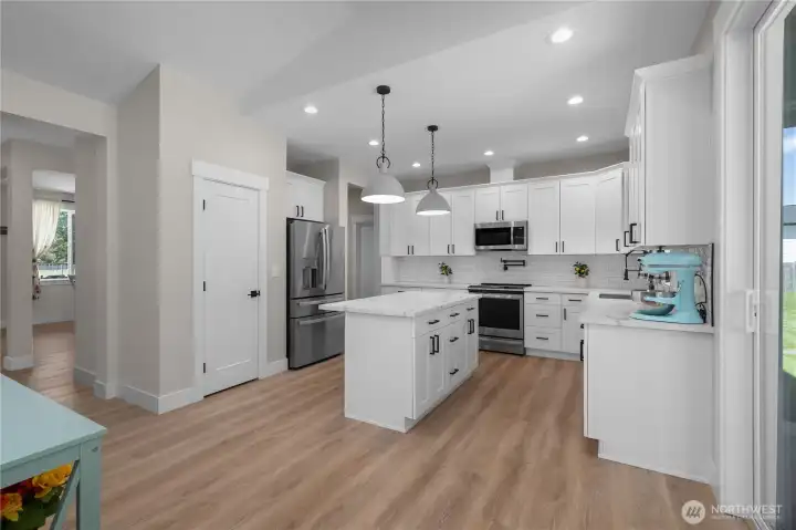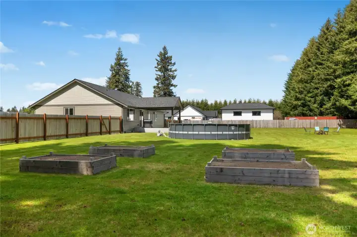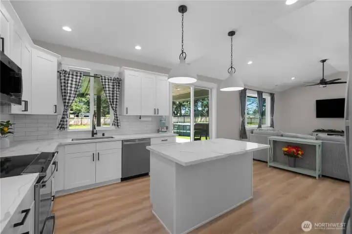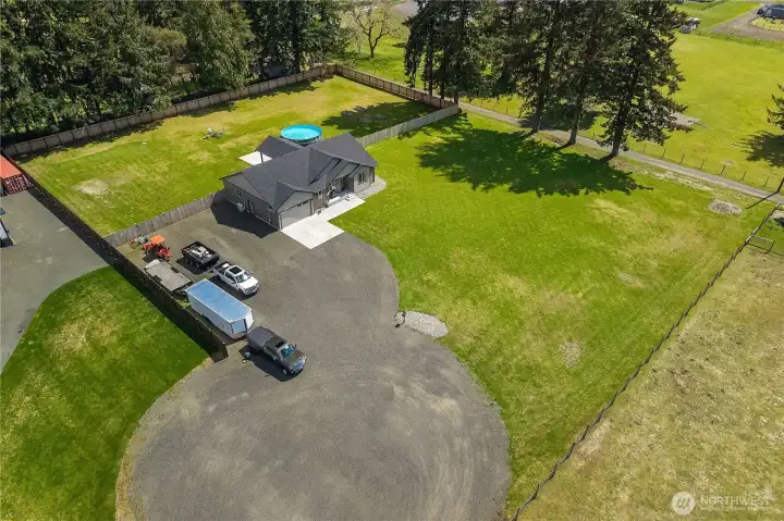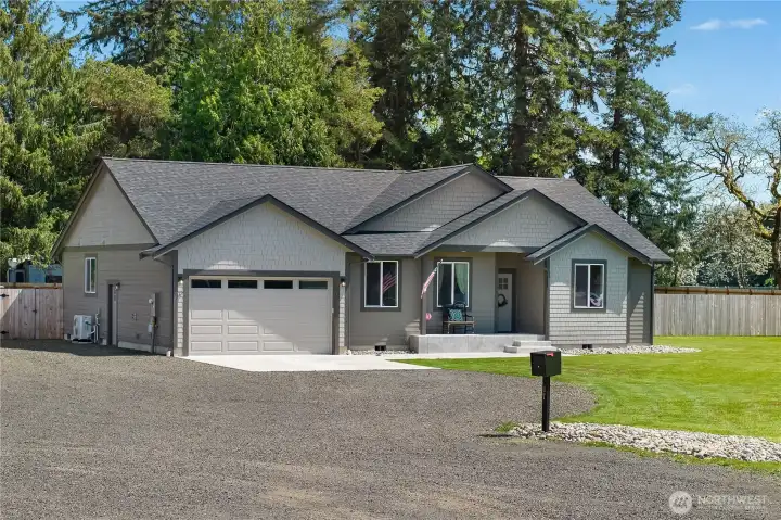 Welcome to modern country living—where luxury, space, and newer construction meet on over 1.6 usable acres. This stunning single-level home blends high-end finishes with wide-open space, giving you the freedom to create your dream lifestyle—add a shop, park your RV, or simply enjoy the privacy of your fully fenced property. Step inside to thoughtfully curated upgrades throughout. The designer kitchen features white shaker cabinetry, quartz countertops, a kettle faucet, and durable LVP flooring that flows seamlessly through the home. The spacious layout offers 3 bedrooms + a versatile bonus room with a closet (ideal as a 4th bedroom, office, or den) and 2 full baths, highlighted by a luxurious primary suite. Unwind in the spa-inspired 5-piece bath with heated tile floors, tiled walk-in shower, soaking tub, double vanity, and a large walk-in closet. Built for comfort and efficiency, the home includes a high-efficiency heat pump for year-round comfort. Step outside to your covered back porch—perfect for entertaining or relaxing in peaceful surroundings. The fully fenced property also features a 50-amp RV plug, four raised garden beds, Enbrighten exterior lighting, and a water softener system. More than a home—it’s a turnkey lifestyle with space to live, grow, and enjoy. Welcome home!