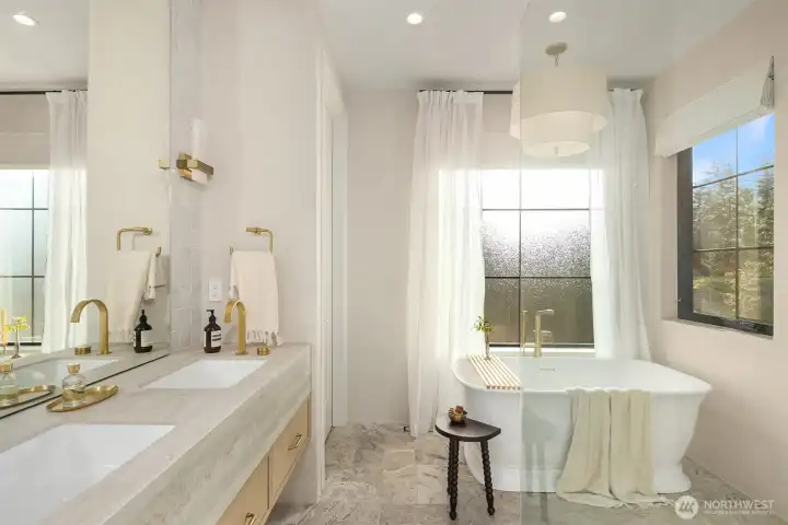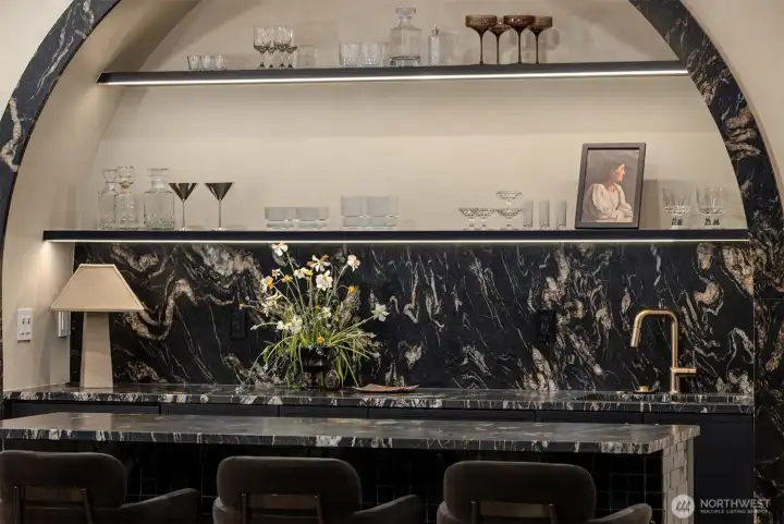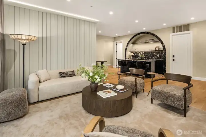 Evoking warmth and refinement through out, this builder’s own 6 bed/6 bath home is a masterpiece that delivers resort spa luxury on your own terms. The cedar-and-stone exterior glows at dusk against a backdrop of the pine trees and sweeping Cascade peaks. Step inside to soaring great room ceilings anchored by the floor-to-ceiling stacked stone fireplace flanked by white oak built-ins + sculptural brass lighting. The chef’s kitchen is a study in considered luxury — custom cabinetry, quartzite slab stone, pot filler, professional range, and a fluted island, all crowned by a custom plaster-finished vent hood that makes clear no detail was an afterthought. The dining room opens through arched passages, with a built-in bar w/wine fridge and custom cabinetry. A lower-level wet bar clad entirely in dramatic black marble — framed by a custom arched surround — sets the tone for serious entertaining. The primary is a true sanctuary of relaxation. Enjoy the cedar Finnish sauna with pebble stone floors, forest-facing glass, gym. Find the hidden office, lounge in the theatre room & more. Step outside to a fire pit lounge, level backyard, a covered deck, hot tub, & easy access to trails. Post Hotel vibes through and through. Walk to the owners-only pool & café, Nelson Farms, and community parks. Every finish detail here was chosen with intention. Every space earns its place. A rare Suncadia offering for the buyer who simply won’t settle. Turn key opportunity, furnishing may convey.