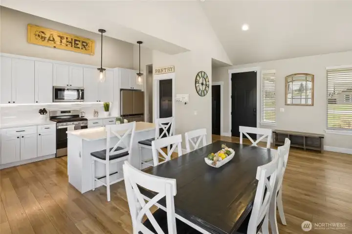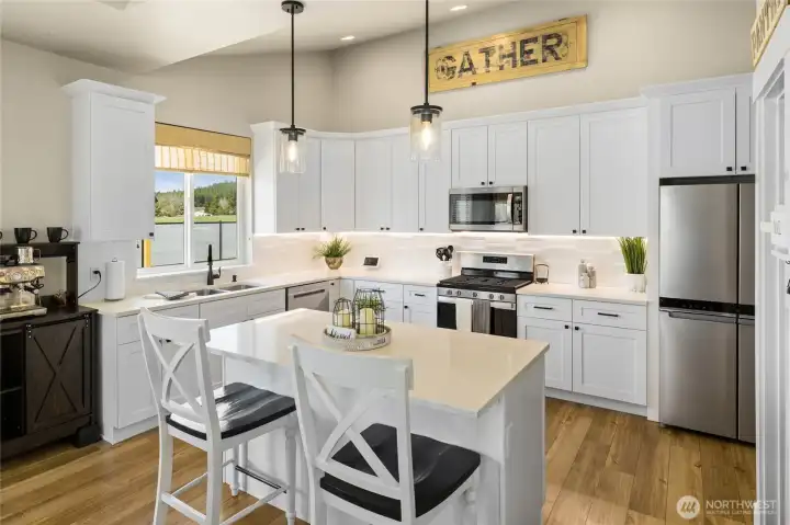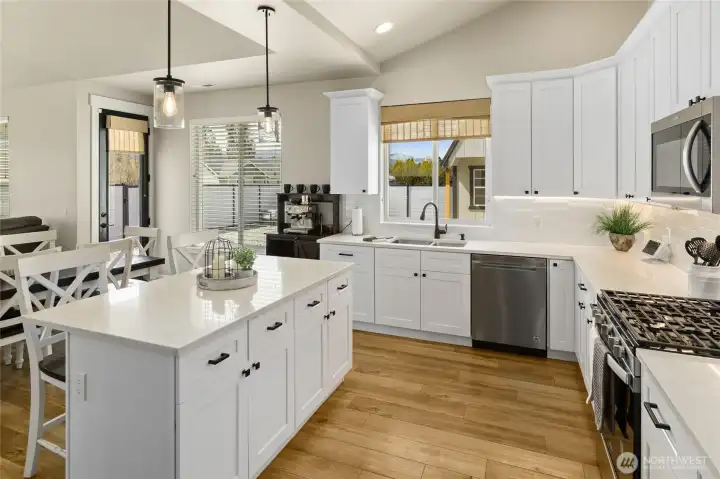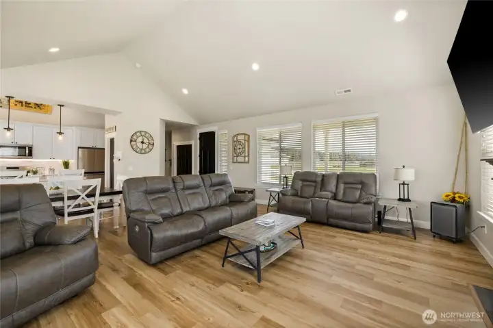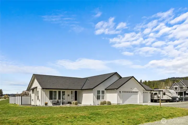 Beautiful single-level home on a shy acre corner lot just east of Cle Elum! Light-filled great room features vaulted ceilings, oversized windows, and durable laminate flooring—creating a bright, open feel. Cozy up to the propane fireplace with custom mantle surround. The kitchen shines with quartz countertops, tiled backsplash, stainless steel Whirlpool appliances, and a walk-in pantry—perfect for everyday living and entertaining.Spacious primary suite offers a walk-in closet and serene ensuite bath with double vanity, glass shower, and soaking tub. An oversized slider provides direct access to the backyard retreat. Two additional guest bedrooms and a full bath offer flexibility for guests or home office needs. Convenient laundry room located just off the attached 3-car garage—complete with workbenches and overhead storage that stay. Extended apron allows for additional driveway parking too! Enjoy outdoor living in the large, fenced backyard with patio, privacy fencing, and a new powered shed. Peaceful rural setting with stunning sunset skies and Peoh Point views, all just minutes to Cle Elum, Roslyn, and endless year-round recreation. VA Assumable Loan at great rate- talk to your Lender!
