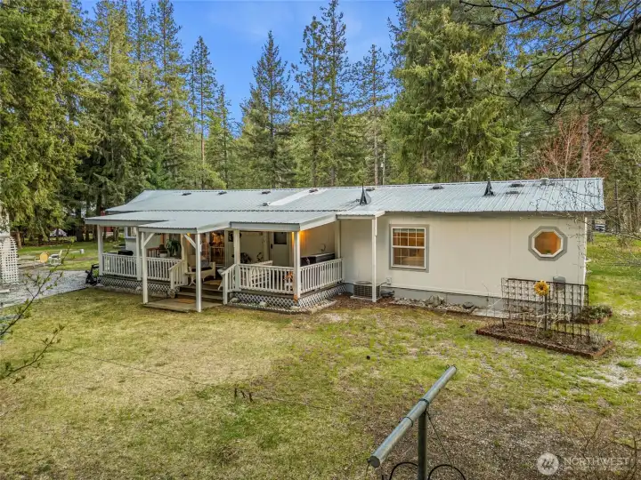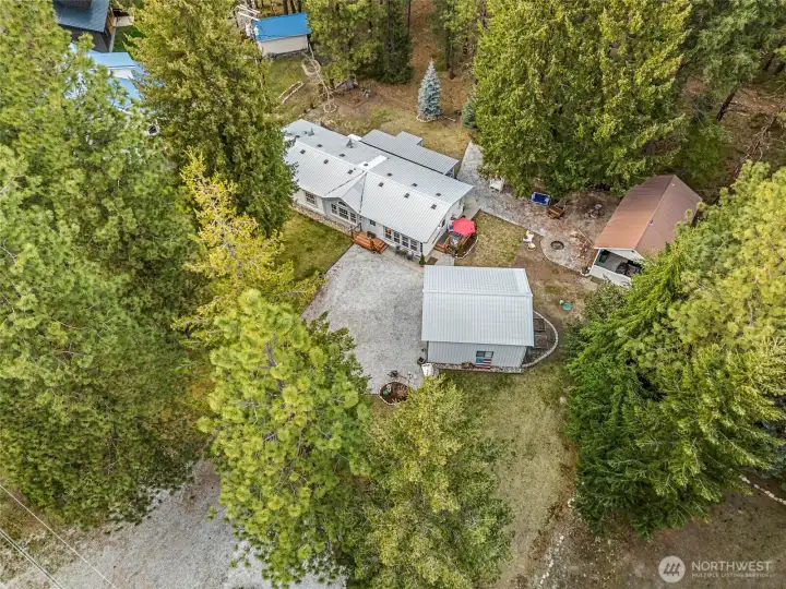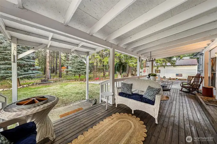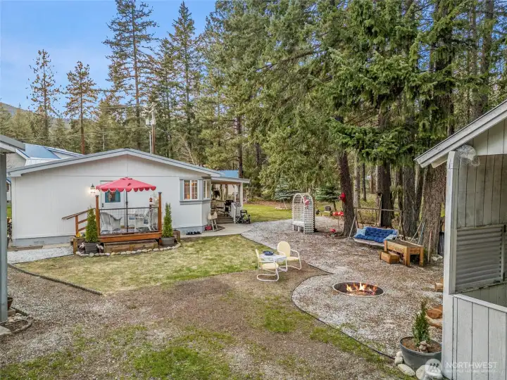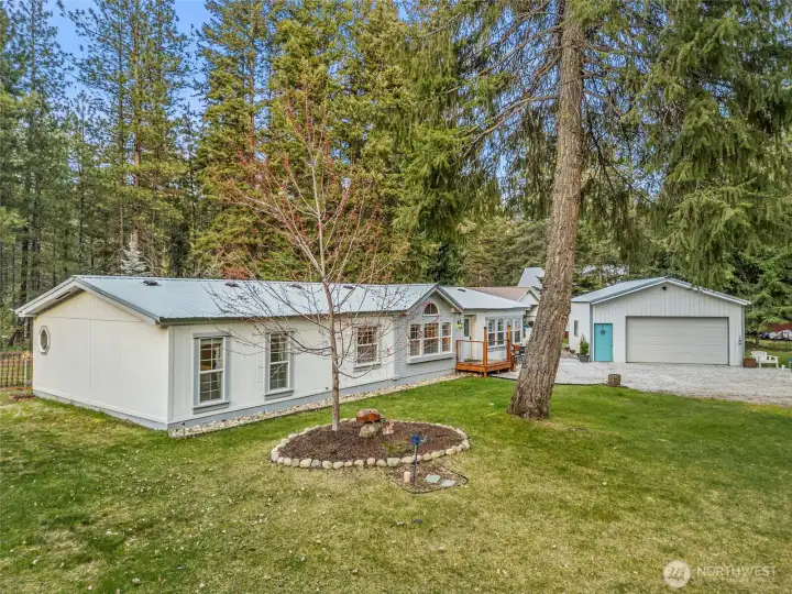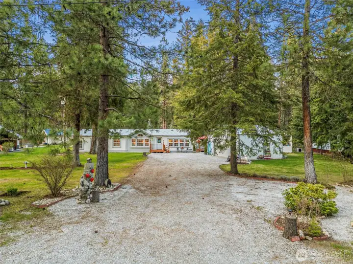 Welcome to Ponderosa Estates in the heart of Plain, WA—where relaxed mountain living meets year-round recreation. This meticulously maintained 3-bedroom, 2-bath home offers true single-level convenience with an open, inviting layout designed for gathering. The spacious primary suite features a 5-piece bath with soaking tub, separate shower, & generous storage, while the large kitchen flows seamlessly into the living area—ideal for entertaining after a day outdoors. Set on 2 level, landscaped lots totaling 0.6 acres & backing to a community greenbelt, the property offers added privacy, sunshine, & space to spread out. A detached 344 sq ft finished flex space with half bath expands your options—perfect for a hobby shop, office, or guest overflow. High-speed fiber internet supports remote work with ease. Bring all your gear with a detached garage plus a versatile carport/workshop space. Enjoy evenings around the firepit, outdoor dining on the covered deck, & peaceful mornings in the garden. Ponderosa Estates is known for its unmatched amenities—private riverfront beach access, a heated in-ground pool, & scenic community trails, all just steps from your door. Outdoor recreation is truly four-season, with endless opportunities nearby. Located just 20 minutes to Leavenworth and 30 minutes to Stevens Pass, this property offers both convenience & escape. Added value comes with low Chelan County power rates & domestic water included in HOA dues.