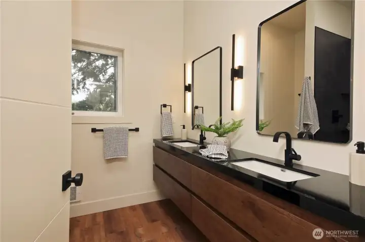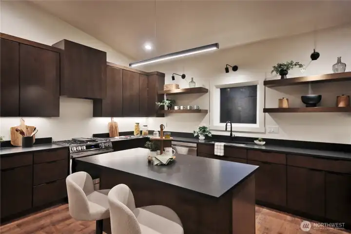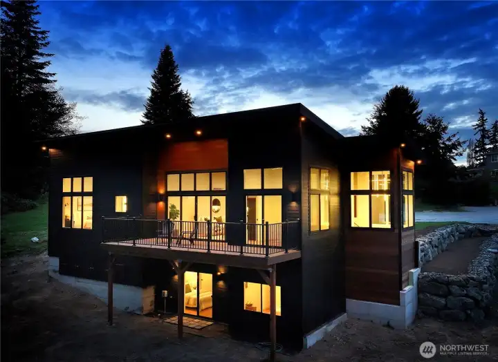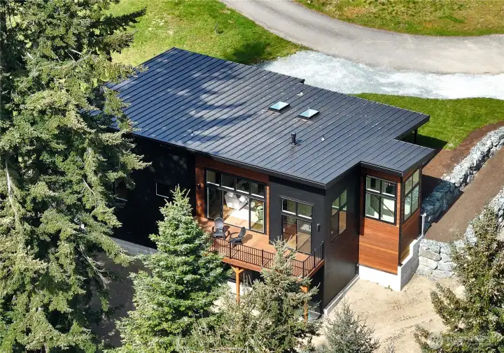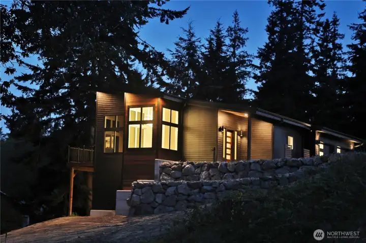 The pinnacle of Pacific Northwest contemporary design, this custom-built new construction offers a refined blend of architectural sophistication and effortless livability. Ideally situated just moments from the vibrant heart of Freeland, you’ll enjoy easy access to boutique shopping, dining, medical services, and scenic beaches—all just beyond your doorstep. Designed to harmonize with its natural surroundings, the home is enveloped in towering evergreens and illuminated by expansive windows that bathe the interiors in soft, natural light. A welcoming foyer provides a gracious entry with space to settle in, unfolding into a stunning main living area defined by soaring vaulted ceilings, a cozy propane fireplace, and a sleek, modern kitchen with quartz countertops designed for both entertaining and everyday elegance. A light-filled office offers a private retreat while remaining connected to the main living spaces. Custom built-ins lead to the serene primary suite, where vaulted ceilings continue and oversized windows create a tranquil, treehouse-like escape. This home continues to impresses with a striking window-lined staircase that opens to a versatile bonus space, along with two additional bedrooms featuring independent climate control and a well-appointed bath. Set at the end of a quiet street on a generous lot, this exceptional residence presents a rare opportunity to experience elevated island living with a modern twist.