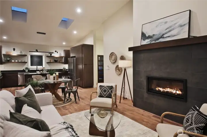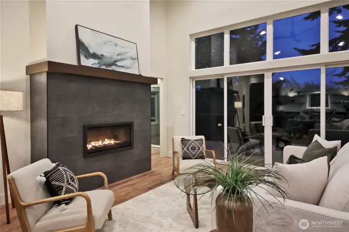 Cozy propane fireplace, and large windows bring the outdoors in.