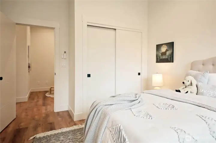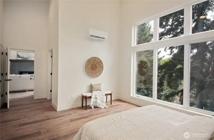 Moving to the other side of the home, into the primary bedroom.