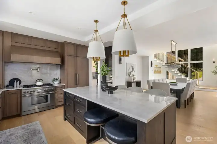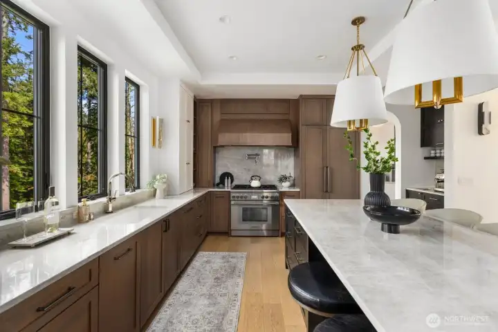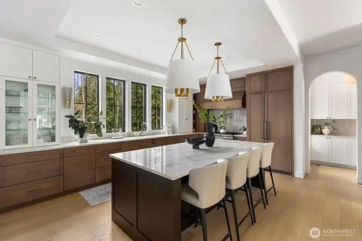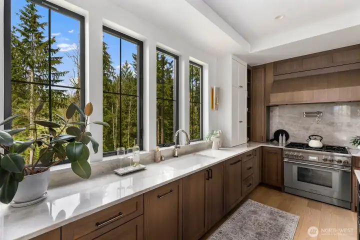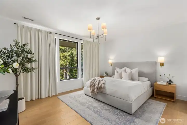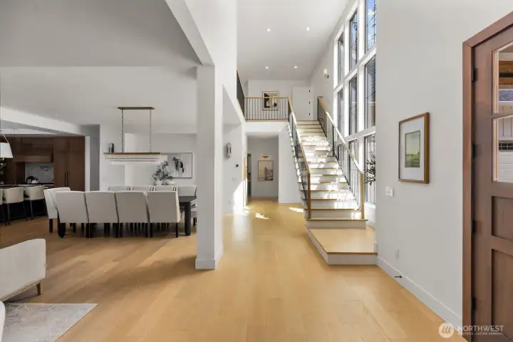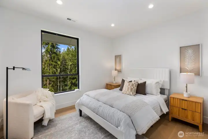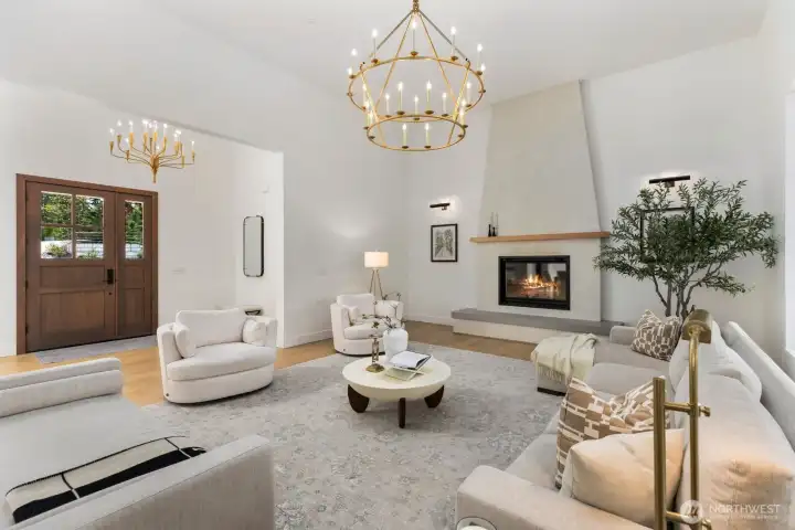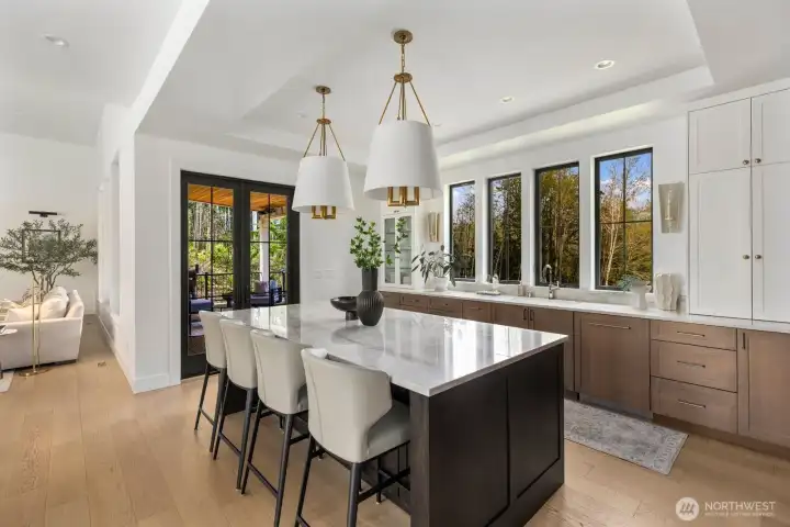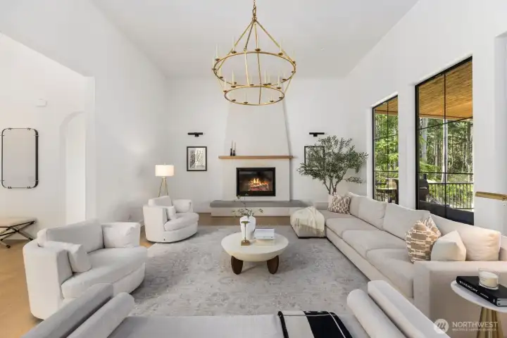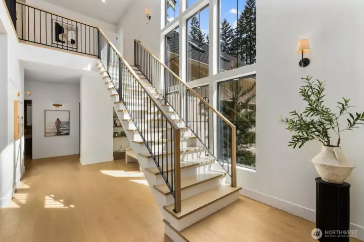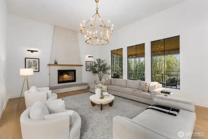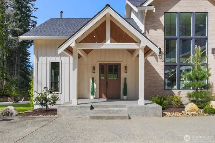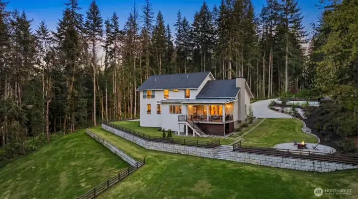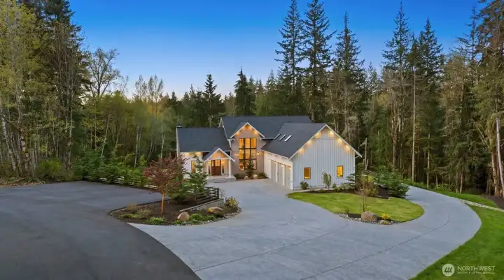 Presenting a stunning custom estate in the desirable Lake Bosworth area of Snohomish. Built in 2022, this 4,237 sqft luxury home offers 4 beds, 3.75 baths on 5 private gated acres with exceptional craftsmanship throughout. Soaring 16’ ceilings, walls of black-framed windows, a designer lime wash fireplace, floating staircase, and rich engineered oak hardwoods create a breathtaking interior filled with natural light.The chef’s kitchen is a true centerpiece, featuring white rift oak cabinetry, Taj Mahal quartzite countertops, an oversized island, and premium Thermador appliances. A fully equipped butler’s pantry with Sub-Zero fridge, prep sink, and dishwasher adds convenience and elegance. The primary suite offers a spa-like 5-piece bath with Italian tile, heated floors, dual vanity, soaking tub, and a custom walk-in closet. A custom high-end sauna with adjoining shower adds a true wellness retreat experience. Additional features include a main-level junior suite, private office with built-ins, and a spacious bonus/media room. Enjoy beautifully landscaped grounds with irrigation, gated extended driveway, RV parking with hookups, a covered heated deck, and space for a future shop. Private luxury living just minutes to Lake Bosworth. Tour today!
