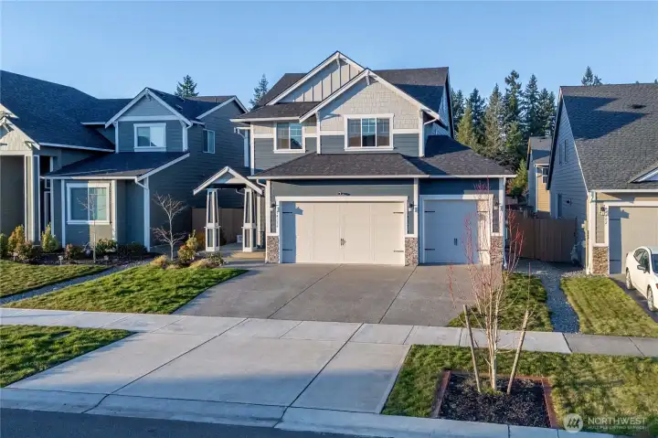Don't miss this sprawling, like-new 3-story home offering 2,737 sq ft of living space, featuring a rare 3-car garage in Yelm’s newest premium neighborhood and it happens to be Soundbuilt's BEST floor plan they are no longer building! This massive 4-bedroom home offers an open-concept main level with a seamless living and dining area, highlighted by quartz countertops, LVP flooring, and stainless steel appliances. Upstairs, you’ll find generously sized bedrooms and living space, while the third floor boasts an expansive bonus room with a full bathroom—perfect as a second primary suite, guest retreat, or media space. Enjoy year-round outdoor living with a covered back patio-plus a fully fenced backyard. Stay comfortable all year with an efficient heat pump and central A/C. Modern finishes, flexible living spaces, and thoughtful design throughout make this home stand out from the rest. Short sale subject to lender approval. List price not yet approved by lender and may not reflect payoff amount. Allow time for third-party approval. Property sold as-is.