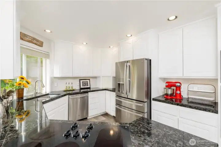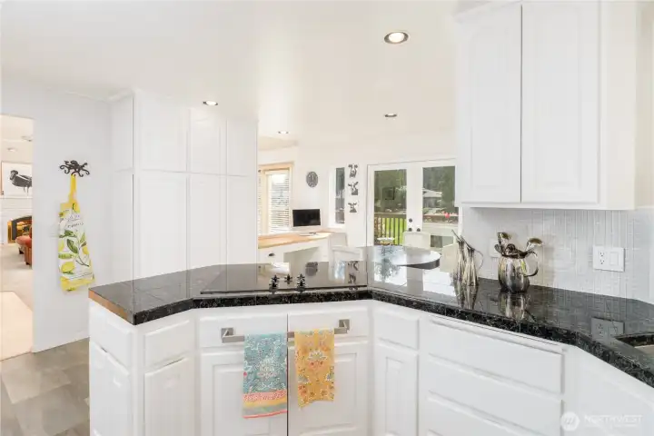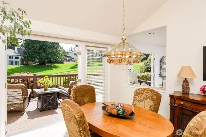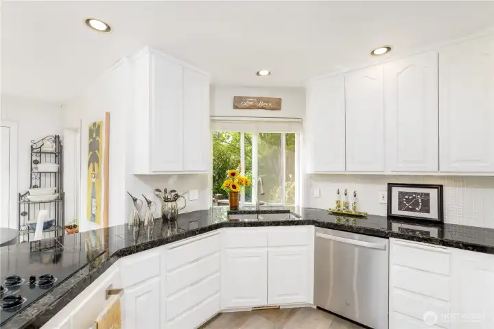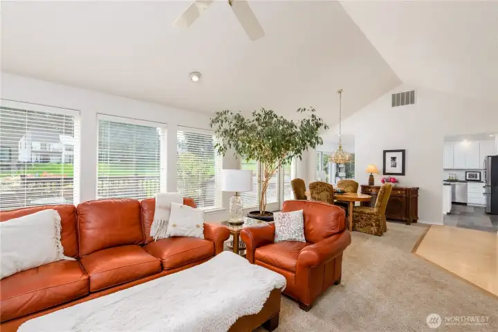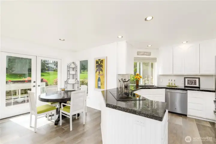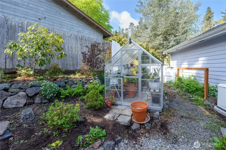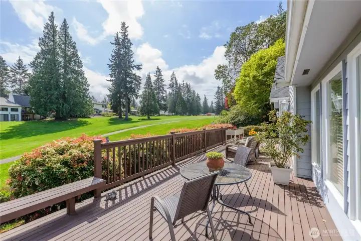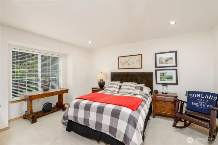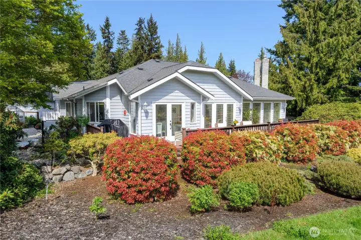 Gorgeous home set on one of Sequim’s best streets & right on Sunland’s 18th fairway. Thoughtfully positioned mature trees create a buffer while also preserving beautiful golf course views from the spacious deck. Vaulted ceilings, abundant natural light from multiple skylights, & a comfortable living room centered around a white brick fireplace and golf course views. French doors connect the formal dining area to the backyard, creating easy indoor-outdoor flow. A granite dry bar adds a nice touch for entertaining. The chef’s kitchen offers granite counters, LVP flooring, pull-out cabinets, pantry storage, & updated appliances. A built-in office/desk area adds a convenient workspace. Generously-sized primary suite with large walk-in closet, built-ins, & skylights. The ensuite bath includes a large tiled shower with multiple shower heads, a jetted soaking tub, dual sinks, tile counters, & instant hot water, plus a private WC room. A second bedroom & 3/4 bath provide comfort for guests. Additional features include a dedicated laundry room, updated roof, newer heat pump, & a generator that can convey. A greenhouse, beautifully maintained landscaping, pathways, & vibrant plantings enhance the outdoor experience. Extra gravel parking adds convenience, while a leased propane tank plus an additional owned tank offer flexibility. Hot tub negotiable. A rare combination of privacy, golf course living, & well-maintained upgrades—this home offers relaxed Sequim living at its best.