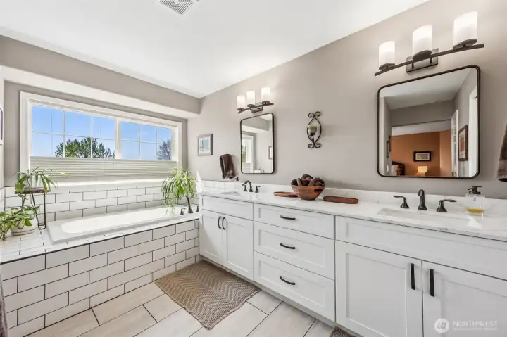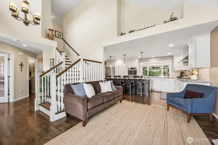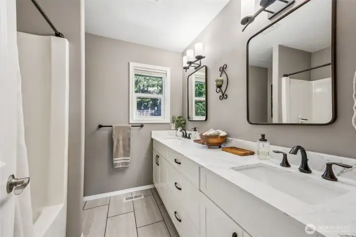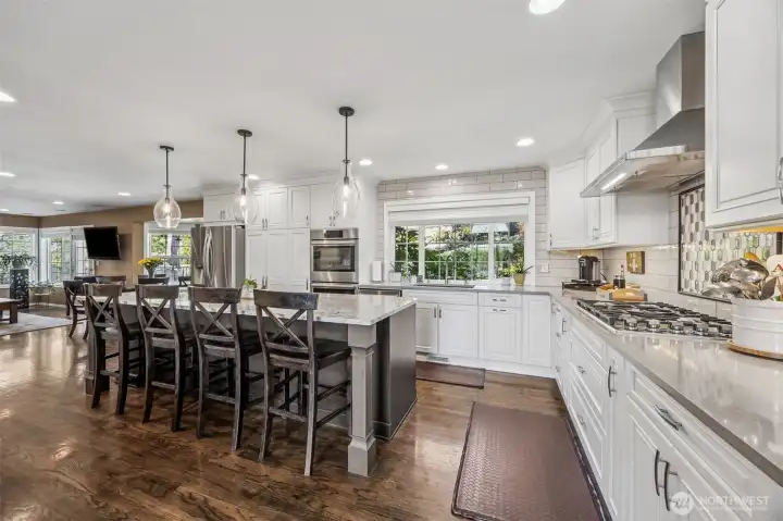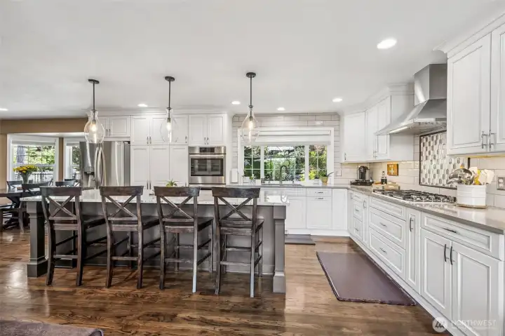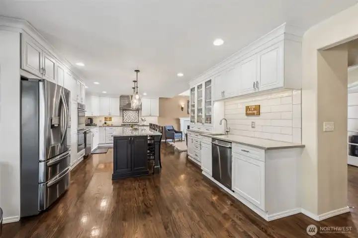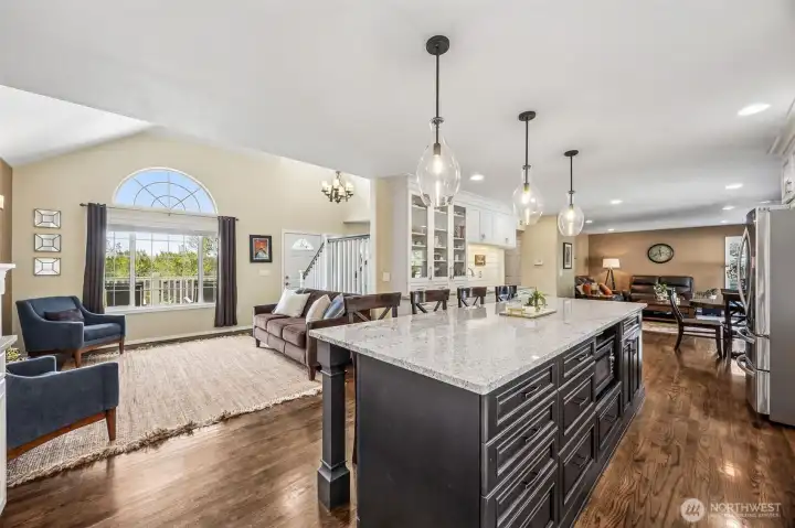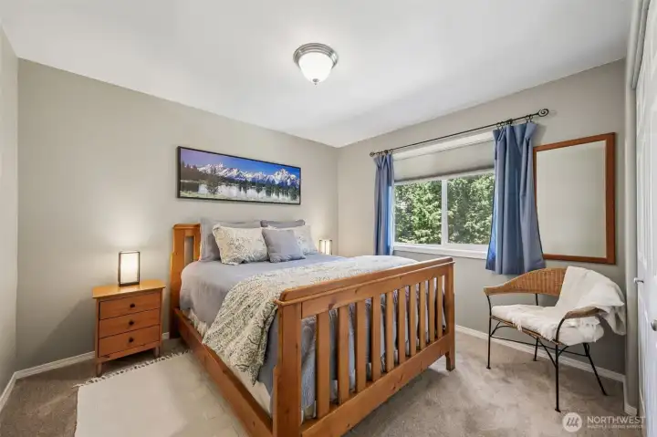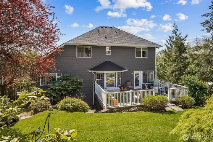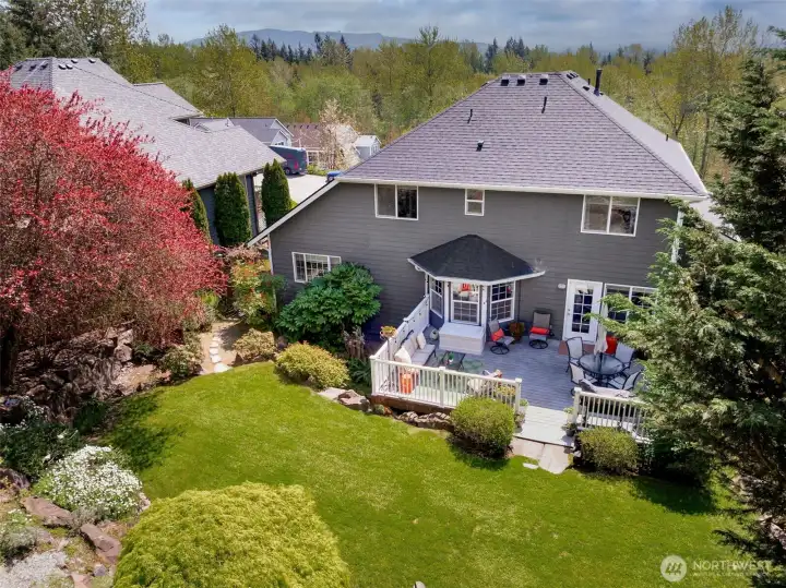 Impeccably maintained Craftsman resale with Mt. and valley views and no HOA. This home offers 3 beds, 2.5 baths, 2532 SF with a den, 400+ SF bonus room and A/C. Entertain in style in the completely remodeled kitchen including quartz countertops, 10 ft. island with granite, tile backsplash, custom floor to ceiling cabinets with soft close and pull out shelves, built in hutch, DCS stove top, Bosch double wall oven and dishwasher, Jenn Air beverage fridge, beverage sink, insta hot faucet, no touch faucet and walk in pantry. Bonus room has built in window bench seating with storage, surround sound in the ceiling, wired for a sauna and great views of the valley. Primary suite has vaulted ceiling, ceiling fan, large walk-in closet with California Closet system, luxurious 5-piece bath with soft close custom cabinets and quartz counters, tile floors, and surround tiled tub. Other features include new carpet upstairs, new bottom up/top-down shades in select rooms, updated secondary bath with quartz, updated half bath, surround sound in living room, new roof, new rain gutters, new exterior trim and soffits, new stairs on front porch and newer exterior paint. Relax on the large deck in the serene and private backyard with mature landscaping, terraced rockeries, natural stone birdbath, built in garden boxes and fruit trees, while listening to the 12x12 pond with LED water feature,UV sterilize,filter,pump,goldfish and stone patio.Close to Chain Lake,parks,shopping and neighborhood trails.