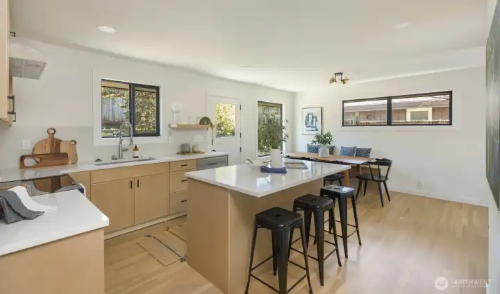 Bathed in natural light, this beautifully updated Mid-Century home blends timeless design with modern ease in one of Magnolia’s most desirable neighborhoods. Just a block and a half from a Discovery Park entrance, you’re moments from miles of scenic trails, open meadows, and beach access. Daily conveniences are close at hand, with Metropolitan Market under half a mile away and Magnolia Village—home to favorite shops, restaurants, and playfields—an easy 15–20 minute walk.Inside, a comprehensive top-to-bottom remodel has transformed the home to near-new condition. Major system upgrades include a new roof, windows, and furnace, offering comfort and confidence for years to come. Original oak floors have been beautifully refinished, preserving the home’s Mid-Century roots while every living space has been thoughtfully refreshed for today’s living.The primary suite captures stunning Olympic Mountain views on clear days, while the sunroom/greenhouse steals the show—an inviting space to unwind and take in golden sunsets. Completely turnkey, the home also includes custom blinds for all applicable windows, stored in the basement and ready for installation to suit the next owner’s style.