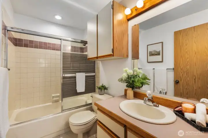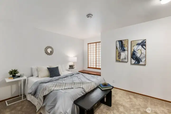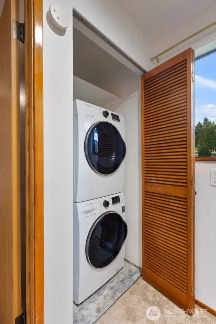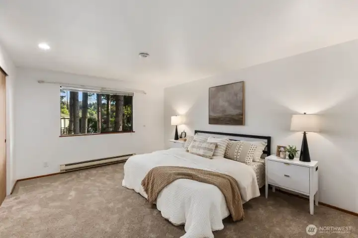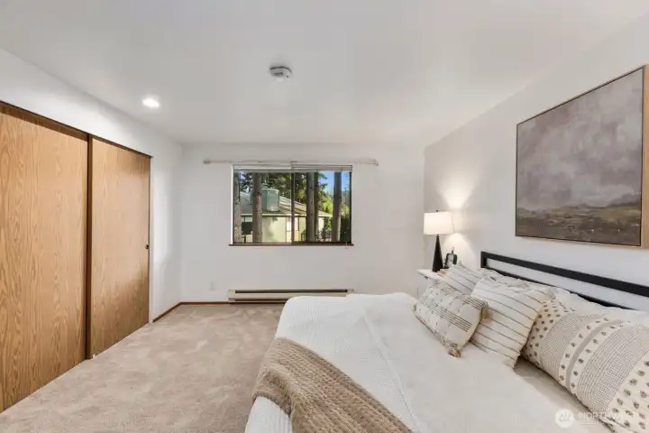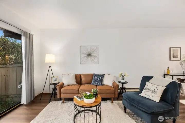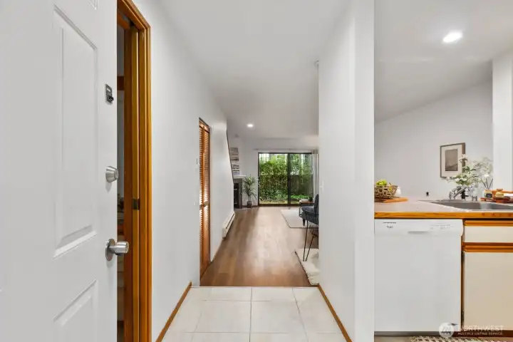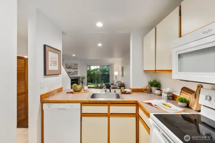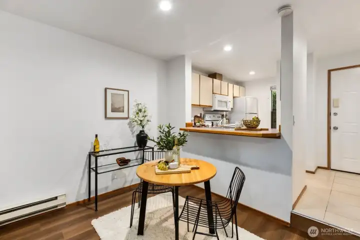 A must see! Welcome yourself home to this beautifully updated end-unit townhome in the desirable Evergreen community of Kenmore. Ideally located just minutes from I-405 and I-5, this home offers an easy commute to both Seattle and the Eastside while maintaining a quiet, tucked-away feel. Thoughtfully refreshed with new flooring, fresh interior paint, and brand-new carpet, the home is truly move-in ready and designed for comfortable everyday living. The functional layout features a bright and open main level, with a spacious living area that flows seamlessly to a private patio with yard space through sliding glass doors—perfect for morning coffee, gardening, pets, or simply relaxing in your own outdoor space. A convenient half bath on the main floor off the living room enhances livability for guests and day-to-day use. Ample kitchen space with bar seating adjacent to the dining nook. Upstairs, you’ll find two well-sized bedrooms and a full bath, offering separation of space and privacy. Dedicated single car detached garage for parking and an exterior storage closet for your day-to-day convenience. One of the best values in Kenmore, this is an incredible opportunity for first-time buyers, investors, or anyone looking to own in a strong Northshore School District location. HOA covers water, sewer, and garbage. A standout option you won't want to miss!