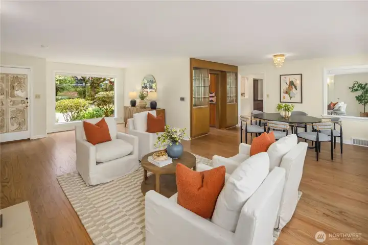 Privately tucked away on one of Magnolia’s most sought-after streets, this cherished home offers timeless style and beautifully balanced living spaces. A welcoming entry opens to spacious living and dining rooms, both framed by stunning picture windows that fill the interiors with natural light. A thoughtfully designed chef’s kitchen—perfect for everyday cooking and effortless entertaining—features an adjacent dream pantry & laundry area. Two generous bedrooms each include a private bath with heated floors & abundant closet space. The oversized family room, anchored by a second fireplace, opens to a covered deck and patio for year-round outdoor enjoyment. On the lower level, discover a charming office, recreation room w/a third fireplace, a third bedroom and bath, + a delightful wine cellar. Abundant storage areas provides endless possibilities—ideal for an ADU, gym, or workshop—offering a flexible canvas to fit your lifestyle. An oversized one-car garage provides convenient entry to the home. Enjoy the idyllic setting just blocks from Discovery Park, close to Met Market, & only minutes from the Village’s boutiques, cafés, & favorite eateries. Don't miss this amazing opportunity to live in one of Seattle's favorite neighborhoods!