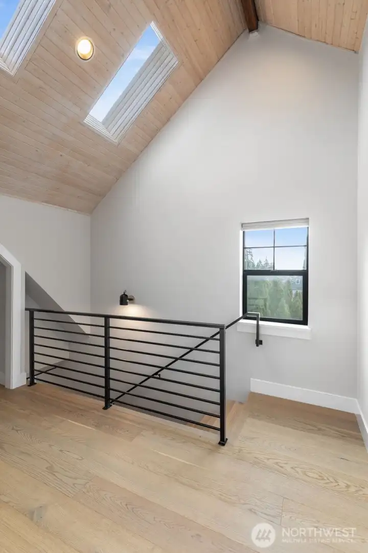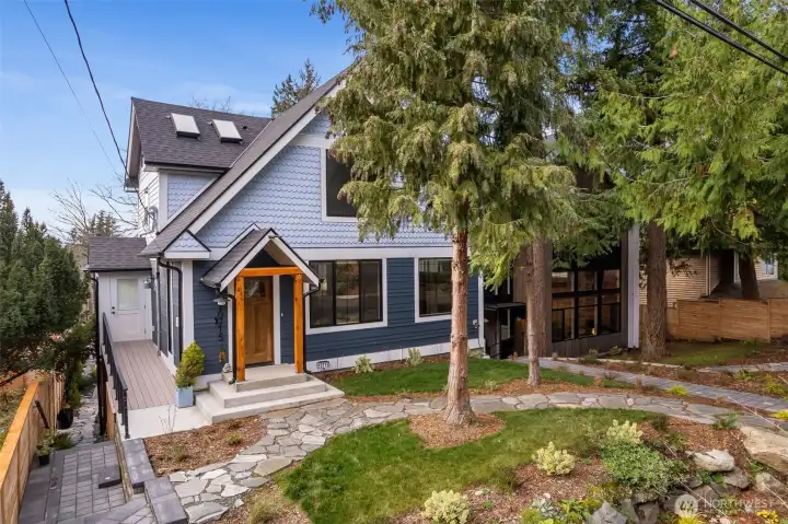 Rarely within the city will you find a more peaceful and unique home nestled off a tranquil winding forested street. Great Broadview location walking distance to Carkeek Park and great local businesses & restaurants. This home has been thoughtfully redesigned and structurally REBUILT from the original with everything brought up to current building & energy codes. All NEW building systems including PLUMBING, ELECTRICAL, MECH. & HVAC with all NEW INSULATION, WINDOWS, SIDING and etc. in 2025. Striking warm wood vaulted ceilings with exposed beams and custom woodwork add to this storybook home’s charm. Numerous windows flood bright natural light onto oak hardwood flooring and crisp modern tiles throughout. With 3 bed, 3.5 baths, office, & two- family rooms you will also find an attic "tree-house" space as well as two stone gas fireplaces. Surprises to be found around every corner. Features open concept living, kitchen, & dining with living area and master decks offering the perfect place to entertain or relax. This beautiful home is ready to be filled with all your cherished moments.