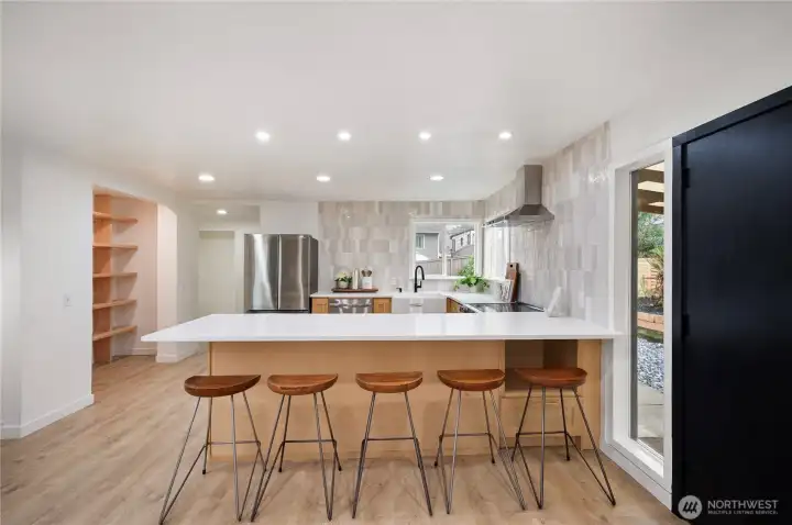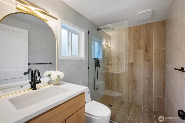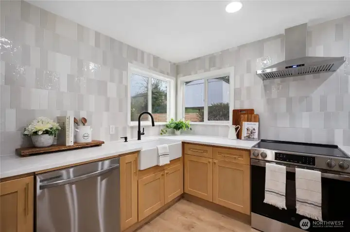 Stunning and fully updated rambler on Talbot Hill featuring 1,580 sq ft, 3 beds, 2 baths. Home is bright with natural light and showcases high end finishes throughout. Bathrooms features porcelain tiles, quartz counters, frameless glass enclosures with waterfall showers. The open kitchen offers SS appliances, farmhouse sink, quartz counter top and a walk-in pantry. Utility room is beautifully lined with quartz countertop. The home is served by ductless mini-splits. Enjoy the mature garden on the large deck with a peak-a-boo view of Lake Washington. Rainy day? Barbecue under the oversized covered patio. Home on a quiet street but is minutes to the freeways, East Valley Hospital, downtown Renton, the Landing. Fully fenced. No HOA!