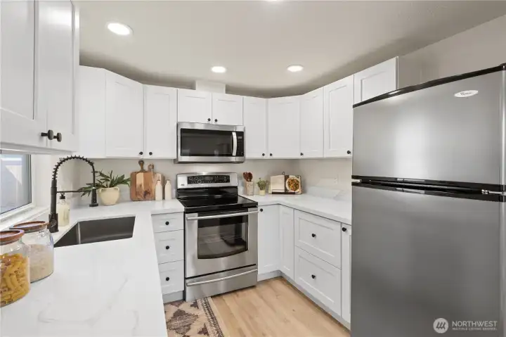 Fully remodeled 2-bedroom, 1-bath home in Lakewood offering modern updates and convenient access to local amenities. This move-in ready property features all-new wide plank vinyl flooring, a completely updated kitchen with stainless steel appliances, quartz solid surface countertops, and a well-designed layout for everyday functionality. The home also includes a refreshed bathroom and a comfortable living area with a stylish fireplace. A dedicated laundry room adds convenience, while the detached two-car garage provides additional storage and parking flexibility. Located just minutes from Joint Base Lewis-McChord (JBLM), this property offers close proximity to the base, major commuting routes, and everyday services. Thoughtfully updated with a balance of style and practicality, this home delivers strong value for buyers seeking quality finishes at an approachable price point. The fresh landscaping makes for a beautiful place to enjoy all seasons. If you need massive parking options this is the one to see!