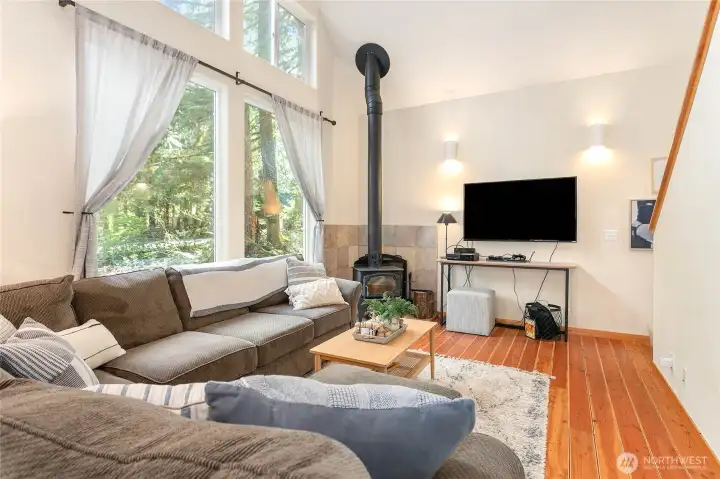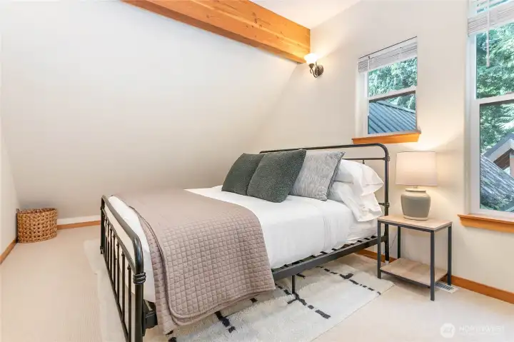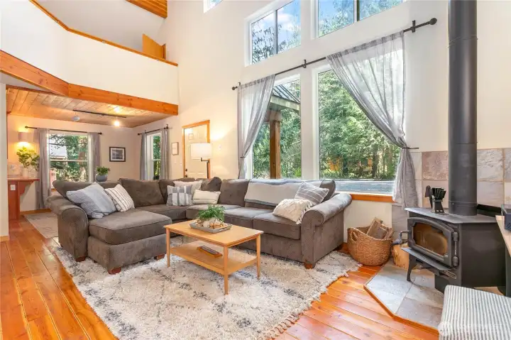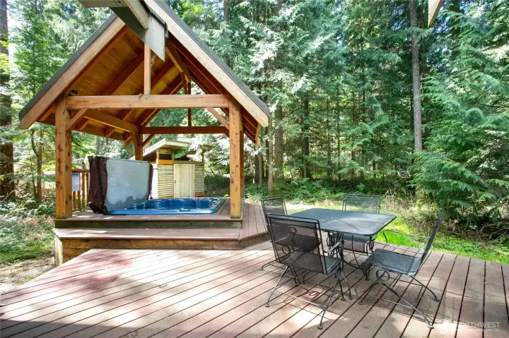 Mountain retreat in the desirable Mount Baker Rim community. This spacious 2,056 SF home features 2 bedrooms (2-bedroom septic) plus multiple sleeping areas, including three finished lofts—ideal for hosting large groups. Sleeps up to 10 pretty easily. Thoughtfully designed with a primary suite offering a tiled walk-in shower with dual heads, plus 2.5 baths total. Unwind after a day on the mountain in your private indoor sauna or relax in the covered hot tub under a backyard gazebo. Cozy up by the wood stove or enjoy the convenience of forced air heat year-round. 2004 Construction and a functional layout. Whole house generator and Fiber internet recently added as well. Community amenities include a clubhouse, sauna, game area, firepit, playground, outdoor pool, tennis and pickleball courts, and internet access—all set against stunning Mount Baker views. A fantastic setup for maximizing your mountain lifestyle or vacation rental potential.