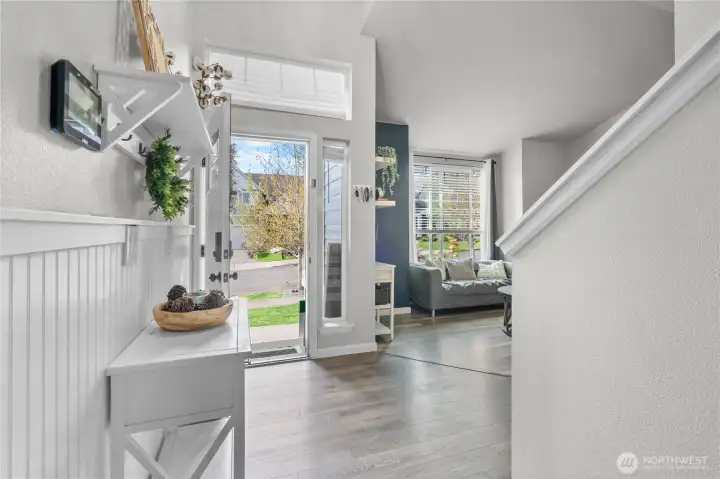 Hall off foyer leads to guest bath, laundry room and door to the fully finished garage
