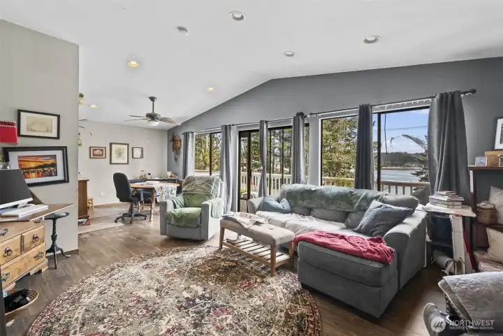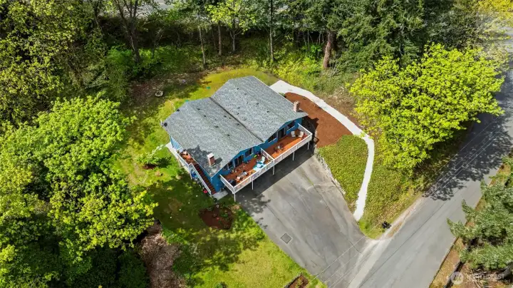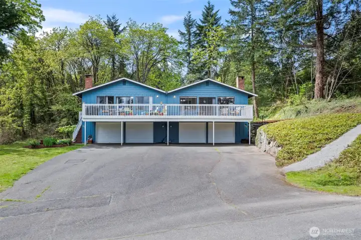 Not just one but TWO Fox Island VIEW homes with more than 2200 sf of garage and storage on a usable 1+ acre lot just across the bridge. So many possibilities are at your fingertips - Live in one, pay the mortgage with the other, take advantage of the space to park all the toys and RV, have a multigenerational compound near the water, or get creative and modify it into one. Each side features a great room with big view windows, vaulted ceilings and sliding doors to the newly resurfaced deck to take in the sunrises, the vistas of Honeymoon Bay and all the activity in Hale Passage. They also each include 2 spacious bedrooms (one with a door to the full bath), a stacked washer/dryer in the hall, and a compact open kitchen on the main level. 298 was renovated in 2016 with new cabinets, granite countertops, new flooring, canned lighting, and resurfaced ceilings (no popcorn). It's currently rented through July 2027 at $1950 per month (under market). 296 is refreshed and ready for quick move in. The huge garage/flex spaces below are a blank slate (or a dream come true for the garage lover) including 220 power. A new 4 bedroom septic installed in 2015 and a small 2nd parcel complete this exciting package!