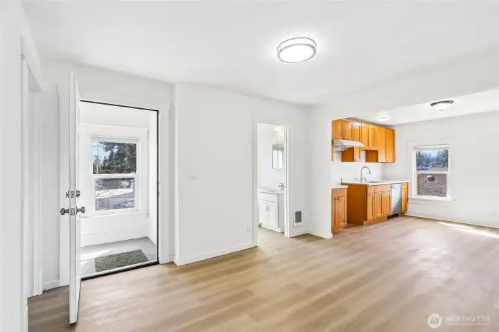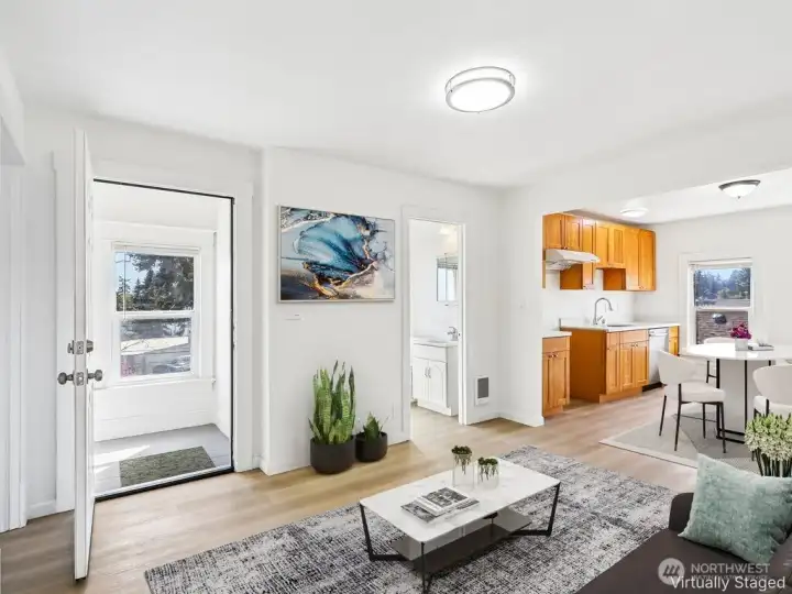 **Recently updated move in ready duplex** Features 3 bedrooms upstairs, 2bdrms on the main level each with its own separate entrance, utility meter & washer/dryer! Notable upgrades include: flooring, painting, bathroom, kitchen, plumbing and electrical throughout. Live in one unit and rent out the other, or convert the duplex back into a single family residence. Detached 2 car deep 26" garage provides space for storage and your toys! Located at the end of a Dead End Street with no neighbors to the left. Over-sized Covered Front Porch. Blocks away from Cheney Stadium, Snake Lake Park & Hwy 16. Listing is sold as-is.