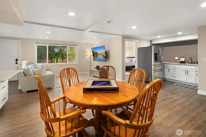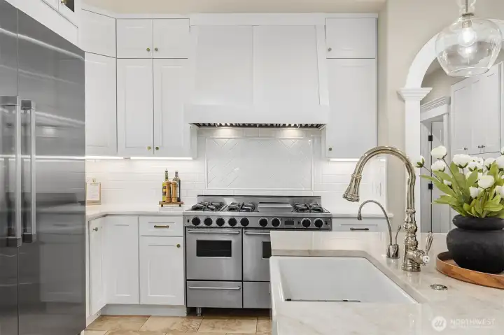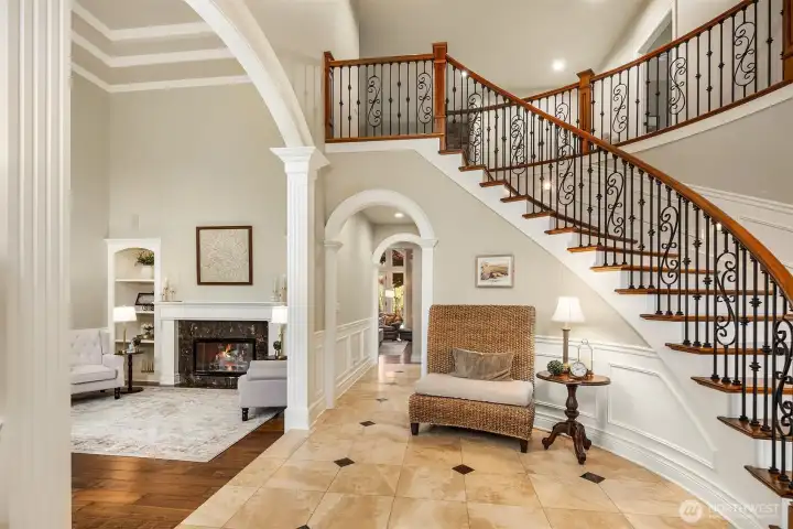 Magnificent 6,900 sq ft estate on 4.5 pristine acres within Cornerstone, Maple Valley's most exclusive gated community. This exceptional home blends refined craftsmanship with resort-style living. Grand two-story foyer with circular wrought-iron staircase, heated travertine floors, extensive millwork, and formal living spaces set an elevated tone.Prepare gourmet meals in your recently remodeled kitchen featuring white cabinetry, 6 burner stove & large quartzite island while enjoying the thoughtful elements including built-in ice maker, butler's pantry & appliance garage. Enjoy the dining & living room areas w/ floor to ceiling windows overlooking your truly special backyard oasis: This resort-style space w/swimming pool, hot tub, multiple entertaining patios, covered outdoor kitchen w/wood-burning fireplace, manicured putting green, and versatile sport court. After a day of play, retreat each evening to the main-floor primary suite w/a private patio, gas fireplace with carved stone mantle, then unwind in your spa ensuite bath w/ walk-in shower, and 2-person soaking tub. Upstairs, find a large bonus room, & 3 oversized bedrooms, each offering walk-in closets & ensuite bathrooms. Entertainment continues downstairs w/ cinema room featuring built-in reclining seats & projection screen! Lower level offers more living space, or possible ADU w/separate entrance, full kitchen, & built in storage. 3-car garage, circular driveway, whole house generator, AC & Tahoma Schools!