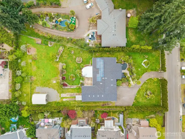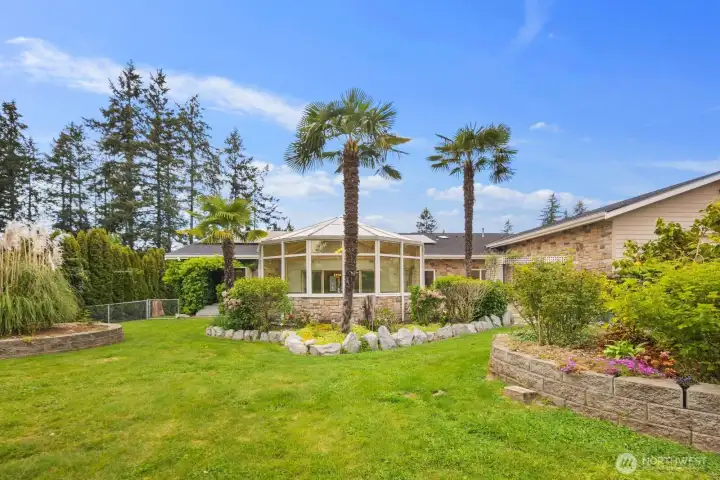 Stunning custom rambler set on an expansive 50,600 sq ft fully fenced lot, offering the perfect blend of comfort, functionality, and outdoor beauty. This spacious home features a luxurious primary suite with an oversized walk-in closet, along with thoughtful upgrades throughout including solar panels, a brand-new furnace and heat pump, tankless hot water system, and a gas generator for peace of mind during rare power outages. The well-appointed kitchen is designed for both everyday living and entertaining, featuring a huge island, double oven, and an abundance of cabinetry providing exceptional storage and workspace. Step outside to your private oasis with beautifully curated landscaping, complete with palm trees, a tranquil koi pond (with mature koi, filtration system, and maintenance equipment included), greenhouse, and abundant garden space. Enjoy a variety of established fruit trees including Bing cherry, Asian pear, peach, apple, and plum, plus thriving berry gardens with raspberries, strawberries, blueberries, and marionberries. The impressive 70’ x 30’ (2,100 sq ft) shop is a dream for hobbyists or entrepreneurs, featuring RV-sized doors and a convenient half bath. With room to live, grow, and create, this one-of-a-kind property offers unmatched versatility and charm.