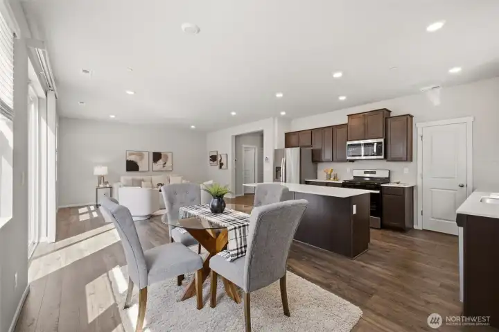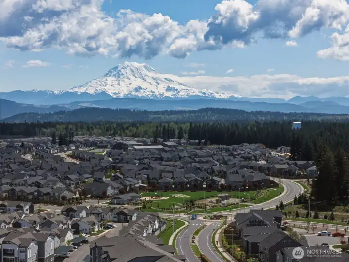 Discover elevated everyday living in the coveted Rainier Ridge Community. Situated ideally on a greenbelt and with views of Mount Rainier, this 3-year-old home has been thoughtfully designed & offers a seamless blend of style and functionality. The open-concept kitchen is both refined and practical, featuring generous counter space, a large island, stainless steel appliances, & abundant storage, including a spacious walk-in pantry, perfect for gathering and entertaining. The adjoining dining area & living room create a warm, inviting atmosphere w/flexibility to suit your lifestyle, whether hosting or enjoying a quiet night in. A well-appointed coatroom & additional storage closet complete the main level with ease and intention. Upstairs, a centrally located laundry room adds everyday convenience. The expansive primary suite offers a true retreat with a spa-inspired ensuite & a large walk-in closet. Three additional bedrooms provide versatility for guests, work-from-home needs, or creative space. Meticulously maintained, this home has been thoughtfully enhanced by the current owners, including a beautifully updated back yard w/ patio & garden beds, an ideal setting for outdoor relaxation and entertaining. Additional highlights include a two-car garage & AC for year-round comfort. Conveniently located near the best of Puyallup, including the WA State Fairgrounds, I-5 access, & historic downtown Puyallup w/its local shops, community events, and farmers markets. Do not miss out!