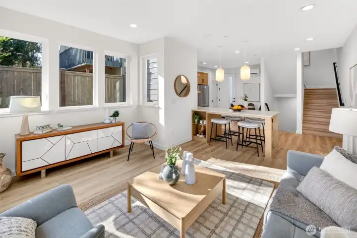 4.75% rate available with preferred lender! Welcome to the latest home by local builder Olsen Anderson. This thoughtfully crafted 3-bedroom, 3-bath home offers 1,570 sq ft of modern living designed for comfort, connection, and everyday ease. The open-concept layout flows naturally for entertaining, with a spacious kitchen featuring ample storage and prep space. A private yard extends the living space outdoors, while the rooftop deck captures beautiful city and mountain views. Three flexible bedrooms offer room for working from home, guests, or everyday living, including a serene primary suite with views of downtown Seattle and Mt. Rainier. A rare opportunity to own a well-crafted home in one of the area’s most desirable neighborhoods. Welcome home!