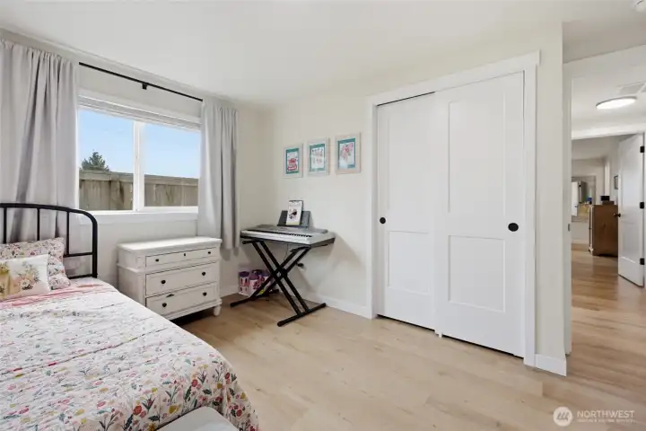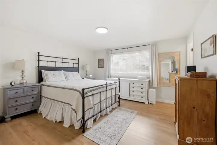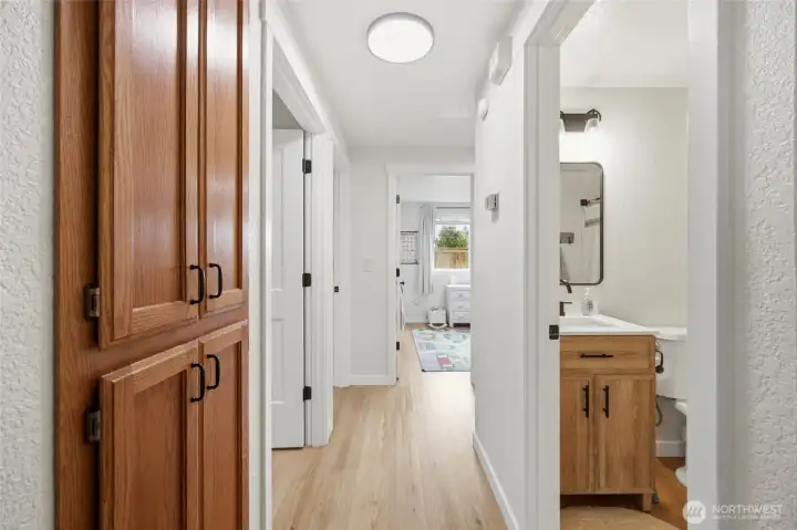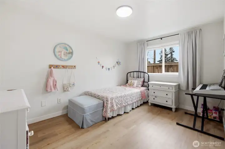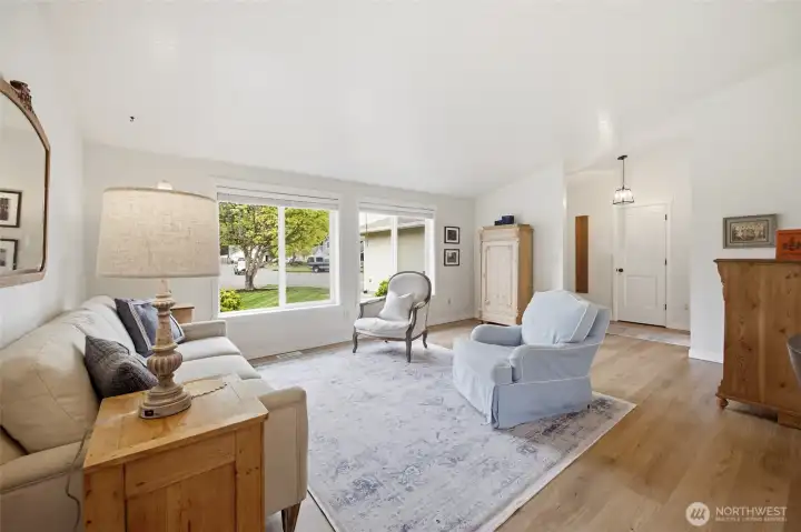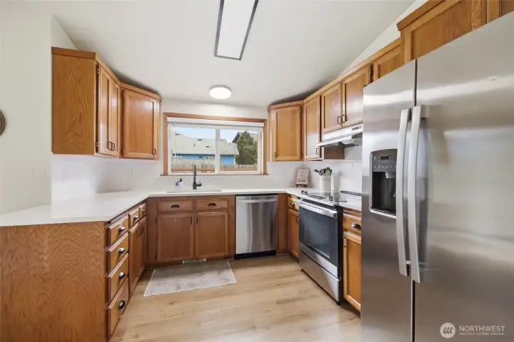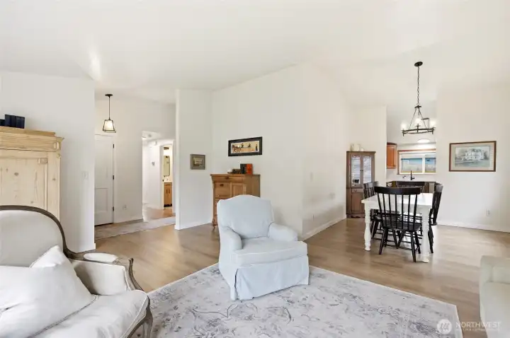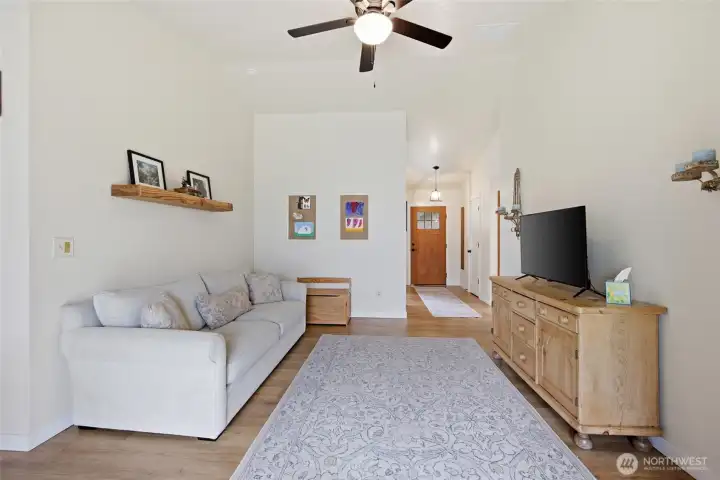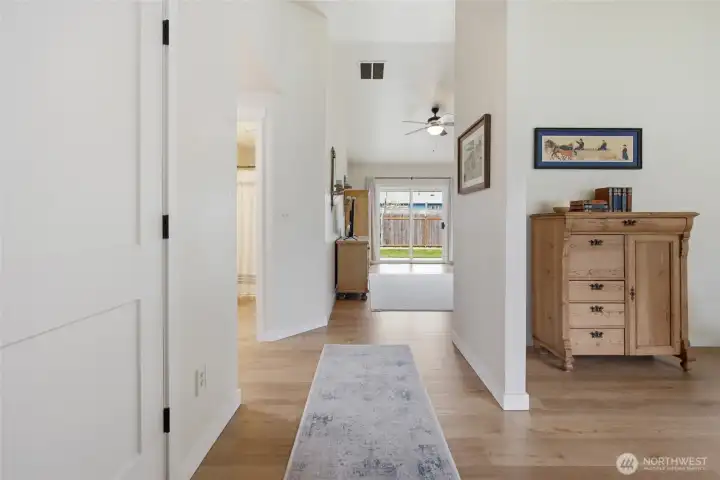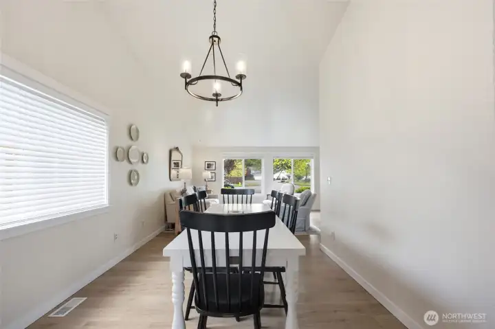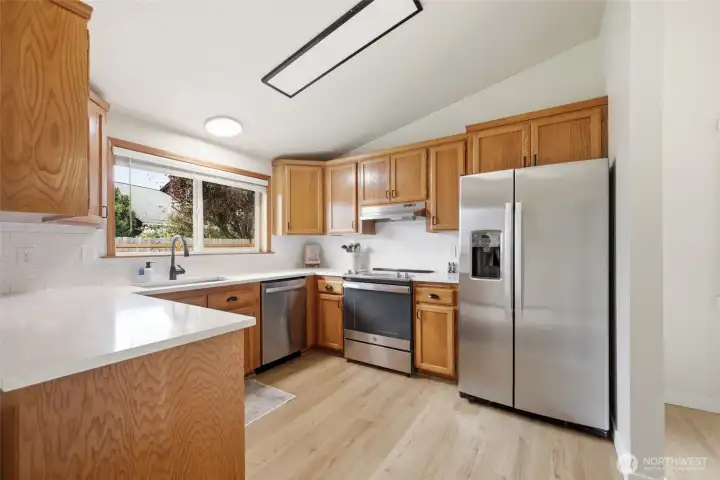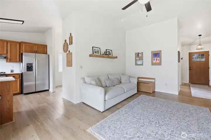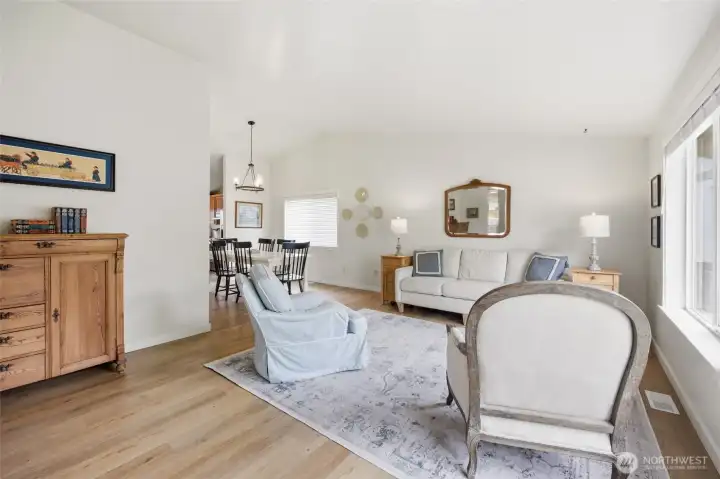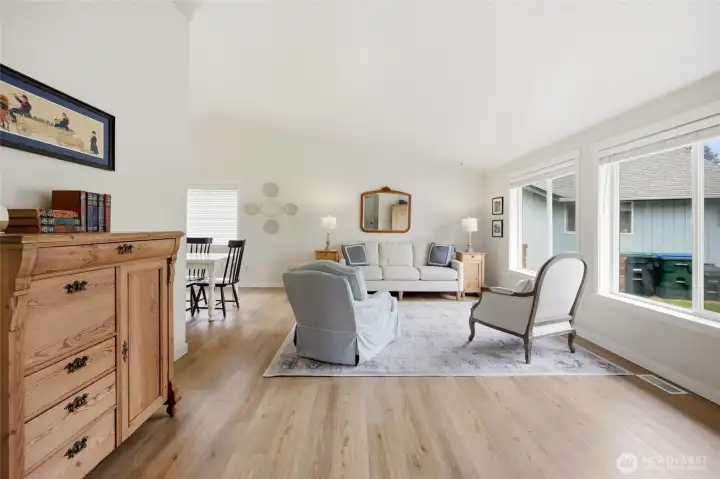 Check out this lovely home located at the end of a quiet cul-de-sac, adjacent to huge open green space! Just under 1,600 sq ft, 3 bed, 2 bath rambler full of updates and charm. Great floorplan with living room and family room, designated dining space, and vaulted ceilings. Easy maintenance and water proof luxury vinyl plank flooring throughout, new doors and trim, and updated baths. Kitchen features quartz countertops, tile backsplash, and newer stainless steel appliances. Great location within walking distance to multiples parks and walking trails. Schedule a tour today!