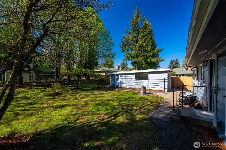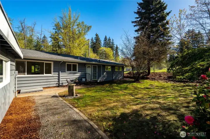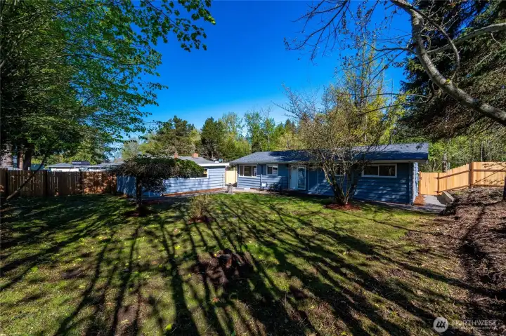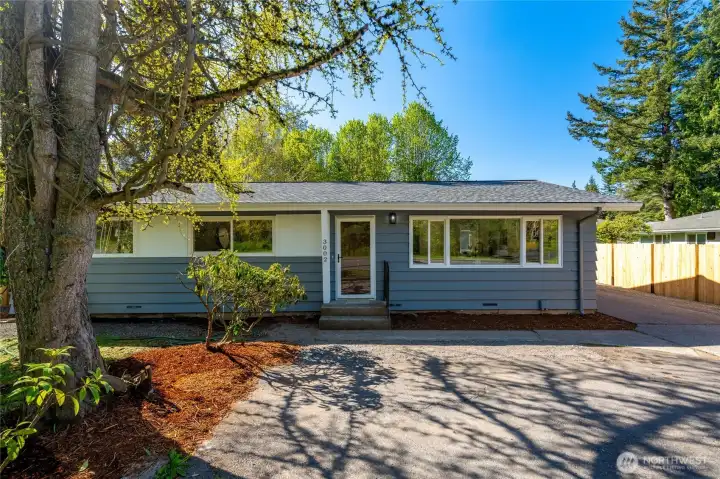 Beautifully remodeled rambler with spacious backyard and mature landscaping in front.