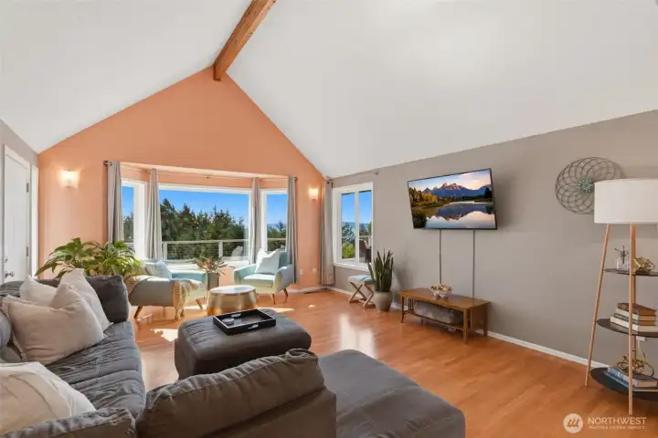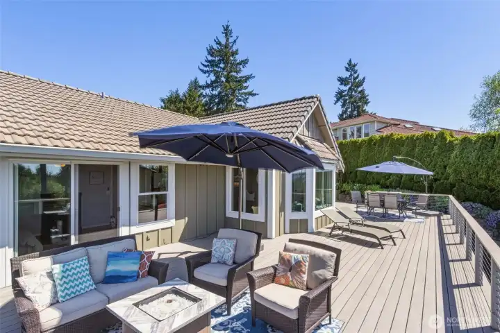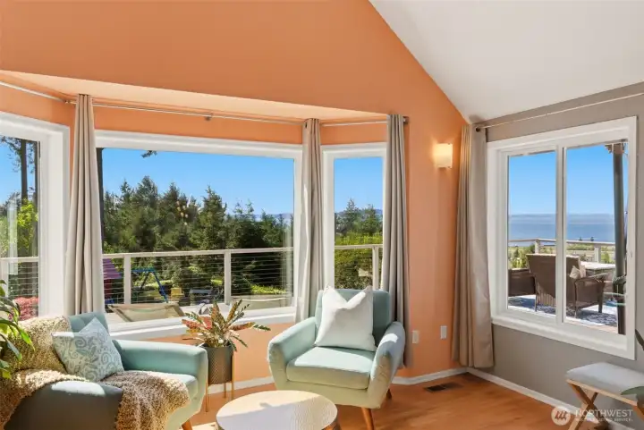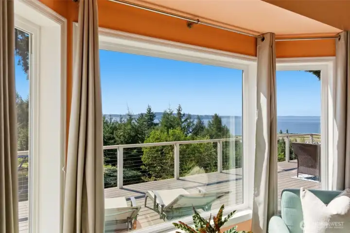 Elevated Living. Unmatched Views. Designed for the Way You Live Now. Perched to capture sweeping 180° views of the Olympic Mountains, Puget Sound, Chambers Bay, and a stunning lineup of islands—this home delivers the kind of everyday backdrop that never gets old. Sunset skies, Steilacoom fireworks, and ever-changing water vistas become part of your daily rhythm. Seamlessly blending indoor-outdoor living, the newly built ~900 SF deck expands your living space in all the right ways—morning coffee, sunset dinners, and effortless entertaining with a front-row seat to the view. Inside, light pours through all-new windows, sliders, and 7 skylights. Two bedrooms up, 2 bedrooms down, 2 bonus rooms, an office and wine cellar. Main-level primary suite w/deck access, a fully equipped media room with wet bar, and a second generous bonus room ideal for work, play, or workouts. Three new gas fireplaces create warmth and ambiance throughout, while a new furnace and heat pump deliver year-round comfort. The kitchen is well appointed w/stainless appliances, gas stove, granite countertops and breakfast bar. Primary suite has stunning views, slider to deck, ensuite updated spa bathroom w/WI closet. Every bedroom features walk-in closets, and storage is abundant throughout—including an oversized garage built. Set on a beautifully maintained .34-acre lot with mature landscaping and rock walls. Situated in highly rated Steilacoom School District, close to grocery, beach, trails, dog park and more!