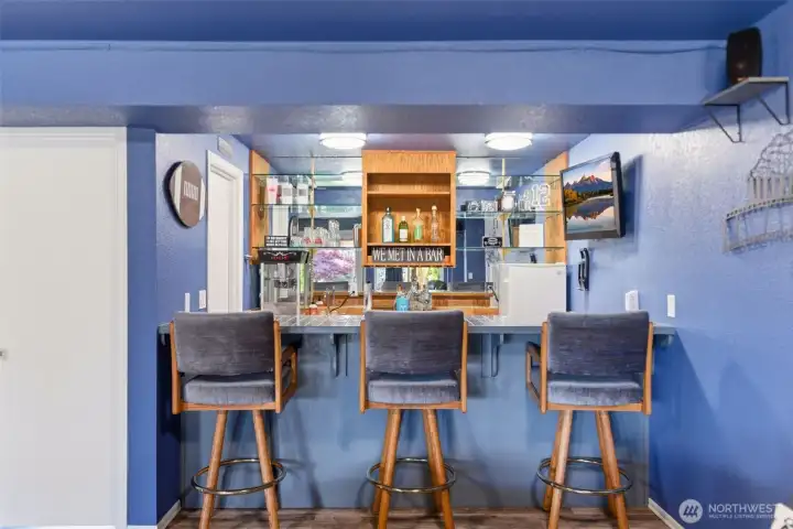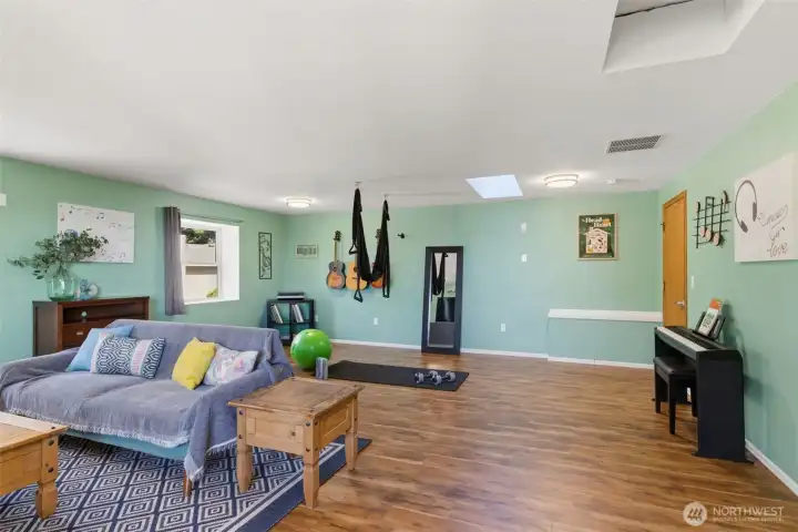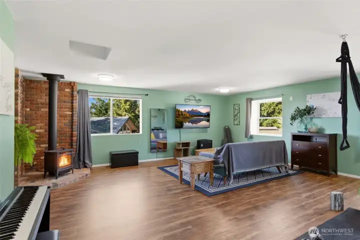 Ultra cool media room or flex space! Bedroom, wet bar, fireplace and outside access.
