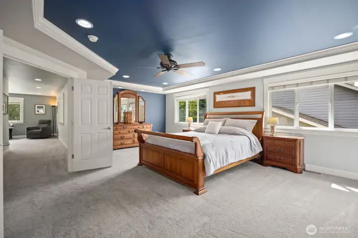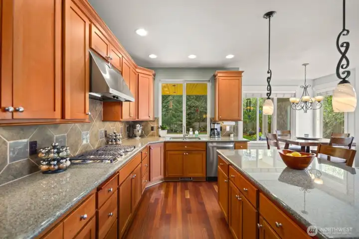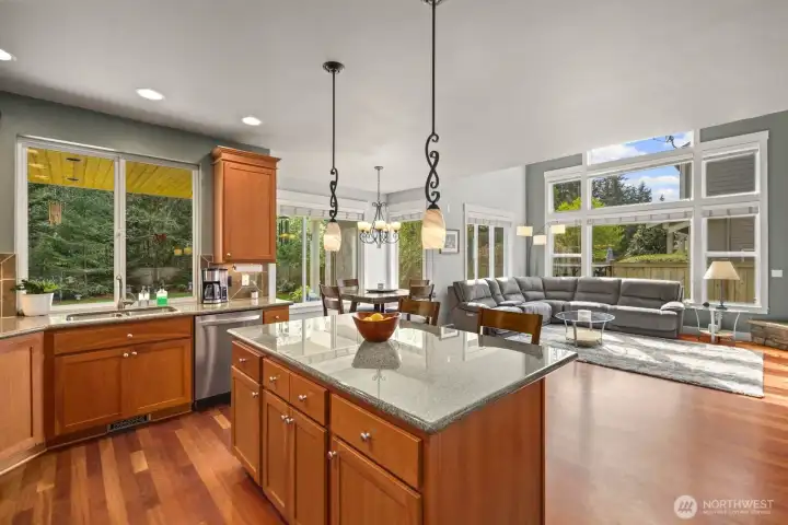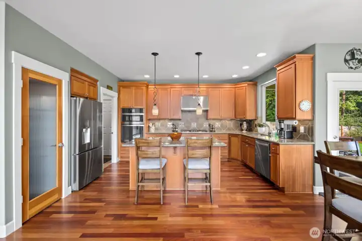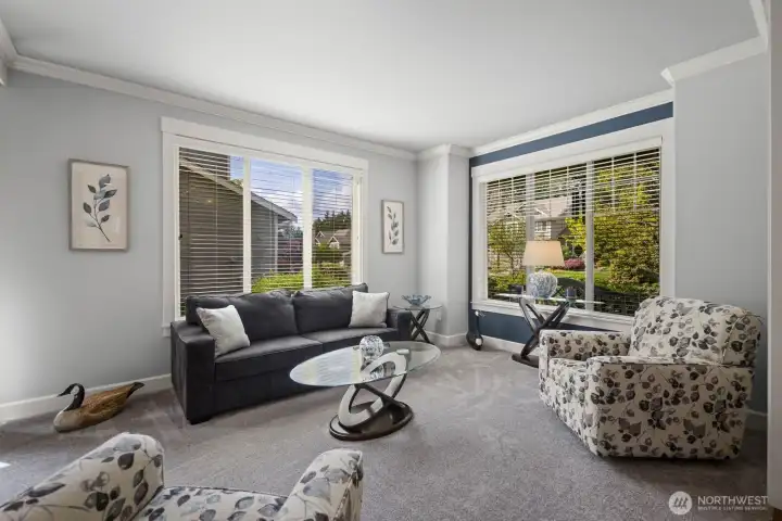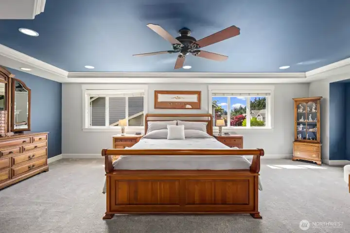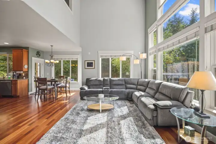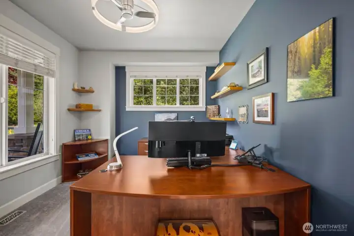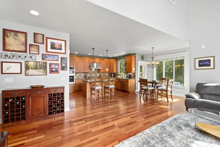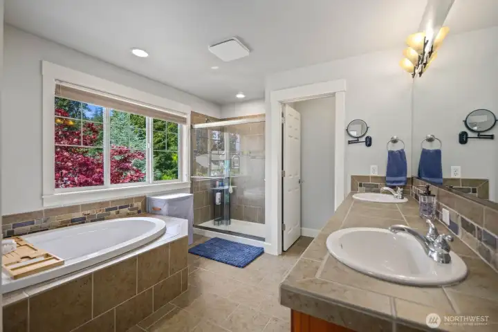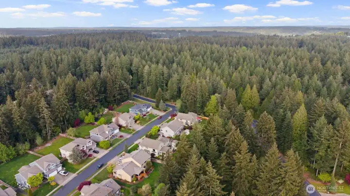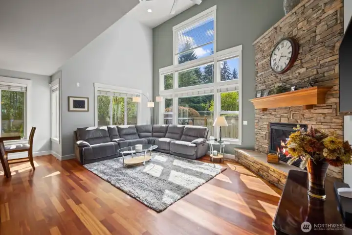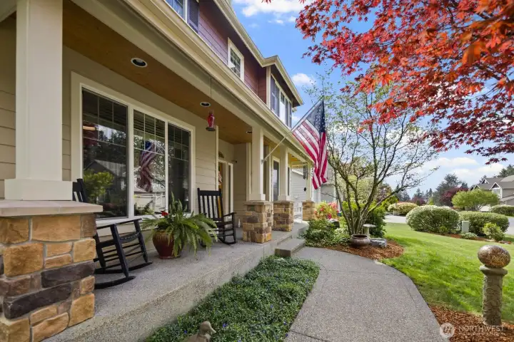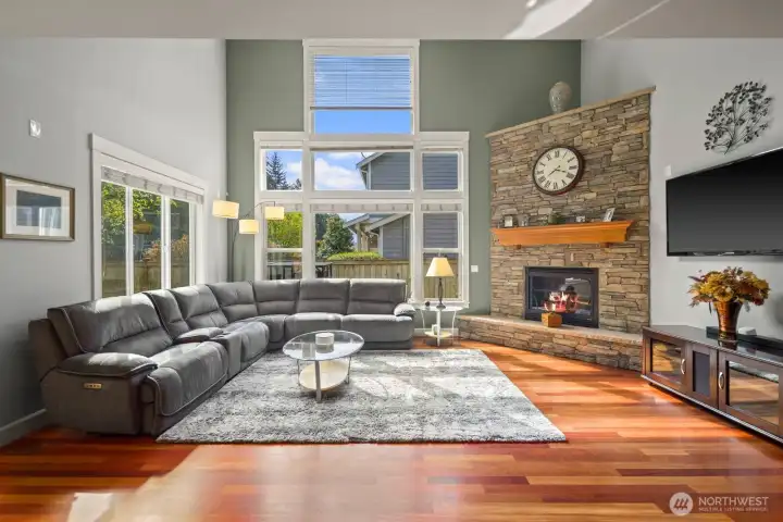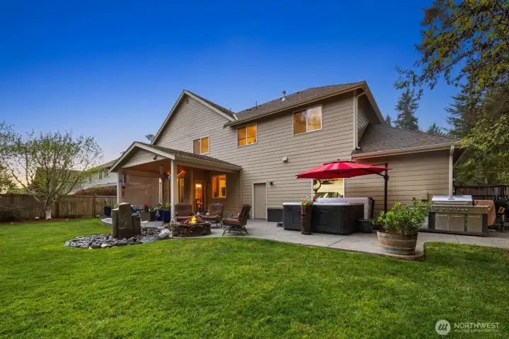 Beautifully upgraded home located in the desirable Rosedale Ridge gated community. 18-ft ceilings in the living room complemented by Brazilian cherry floors with a Swedish finish & a gas fireplace. Living room is wired for surround sound, with in-wall TV wiring. Open kitchen features under-cabinet lighting, NEW stainless steel appliances, flowing seamlessly into the main living spaces. Main floor includes a dedicated office, powder room, formal living & dining areas. Upstairs features a bonus room overlooking the main living space, laundry room, & a well-designed bathroom with a separate tub/toilet area. Spacious primary suite includes a gas fireplace & views of the Olympic Mountains. Ensuite 5-piece bathroom with stand-alone tub, shower & large walk-in closet. Additional features include skylights, central vac & custom window coverings throughout. Major systems updated: AC & furnace (2024) & water heater (2023). Garage includes built-in storage, workbench, cabinetry, second subpanel with ample capacity & is plumbed for an air compressor. Exterior includes RV parking with 30-amp plug, oversized driveway & gated backyard. The backyard is fully fenced & extensively landscaped with mature trees, vibrant flower beds, water feature/fountain, built-in fire pit, covered patio & expanded concrete patio with 2018 Clearwater hot tub. Mature Honeycrisp apple tree included. Community amenities include sports court & nearby access to McCormick Forest trails & Rotary Bark Park.