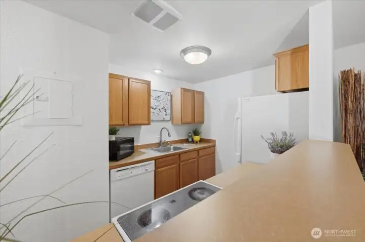 Welcome to Northridge Condominiums in North Lynnwood, just one block west of Hwy 99. This move-in ready 2-bedroom, 2-bath lower-level unit offers no-step entry, in-unit laundry, a cozy fireplace, and a private back patio with storage closet. The kitchen features ample pantry space for excellent storage and functionality. Fresh interior paint, new bedroom carpet, professional cleaning, and new zone wall heaters add comfort and convenience. Enjoy one reserved parking space plus ample first-come, first-served parking, plus additional guest parking. Close to public transit, Park & Ride, Light Rail, shopping, dining, and everyday amenities. Easy commute to Boeing, other major employers, and convenient access to I-5. A great option for a home or investment property. Pet friendly with restrictions.