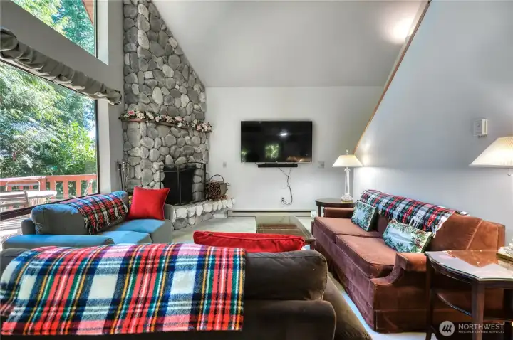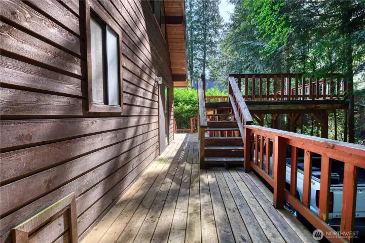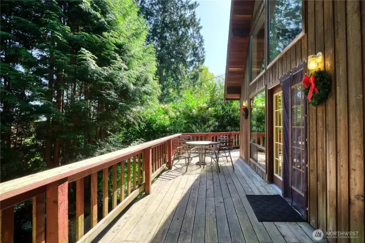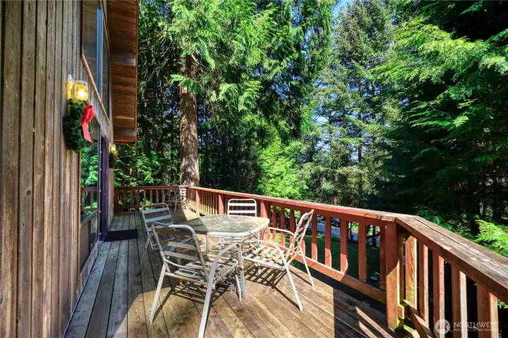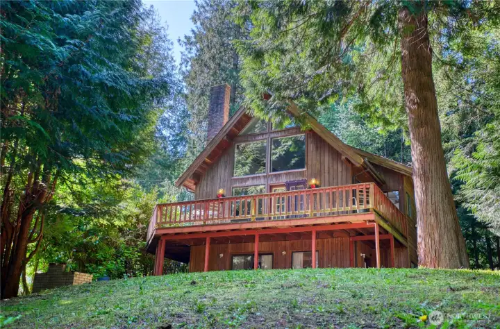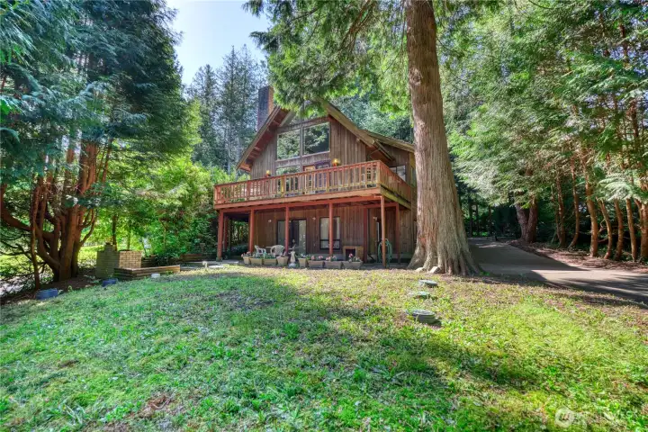 Escape to your own private forest sanctuary in the heart of Point Roberts. This thoughtfully designed four-season home blends rustic charm with practical functionality. The spacious home features soaring vaulted ceilings and a classic wood-burning fireplace that anchors the open living space, a separate lower level suite, huge wrap around decks and an open loft that can sleep additional visitors. Tons of outdoor space make entertaining a joy. Outdoor features include a rooftop patio over the two car carport, a brick wood burning barbecue and lots of storage. A little hedge trimming will reveal the mountain and ocean view from the rooftop patio. Whether you’re looking for a full time home, weekend getaway or short/long term rental, this diverse property presents the perfect opportunity to own a little piece of paradise.