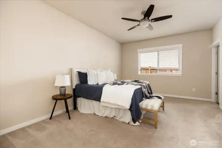 Primary suite with walk-in closet + private bath