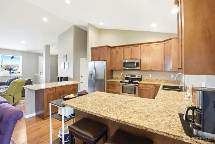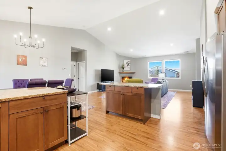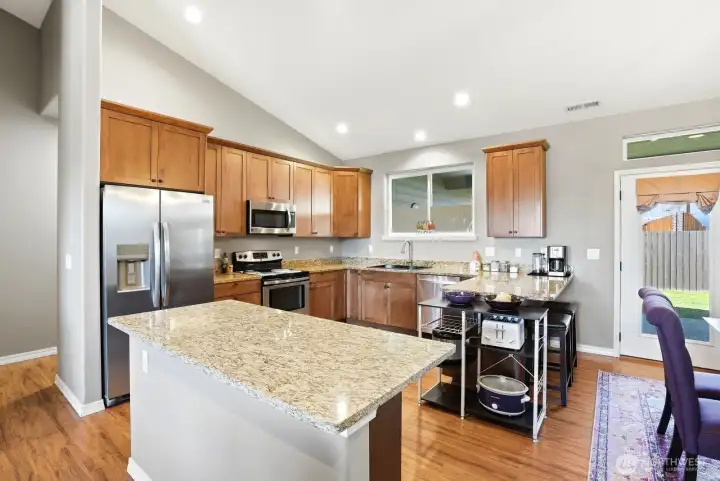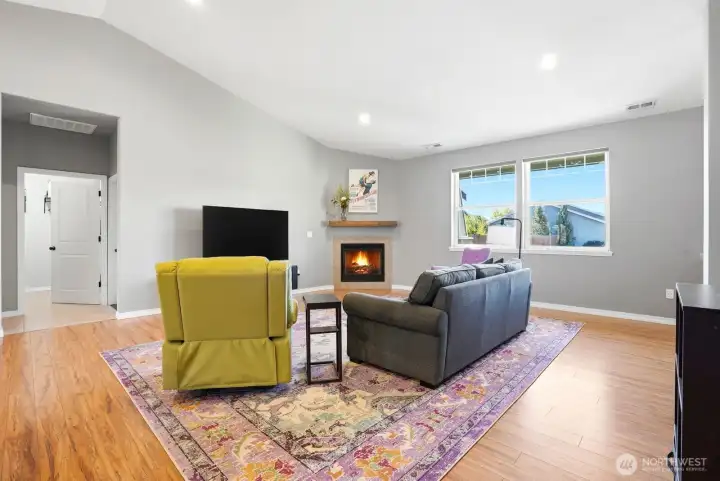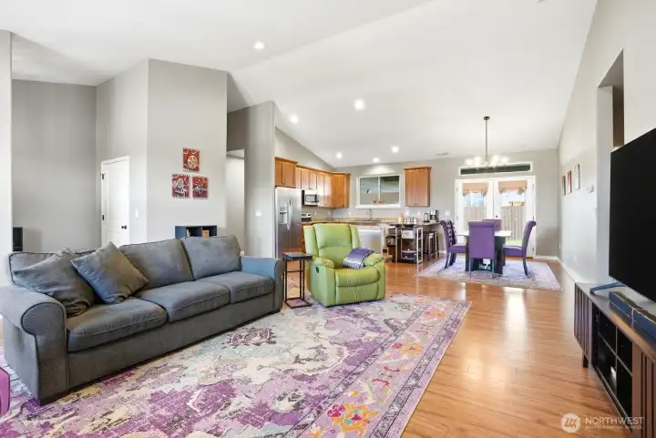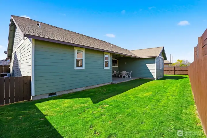 Immaculate, single-story home with the perfect floor plan, now available. Bright and open with incredible vaulted ceilings. Large windows fill the space with stunning natural light. Massive, private primary suite is situated opposite additional bedrooms and includes a beautiful walk-in closet, a dual sink vanity and thoughtful linen storage space. Wind protected covered patio provides the ideal spot for enjoying a meal outdoors and a sheltered place to grill no matter what the weather brings. Perfectly manicured yard is established and easy to maintain and the fenced backyard offers privacy. A rare opportunity to own a beautifully maintained home that feels brand new in a peaceful, established neighborhood setting. Welcome home!