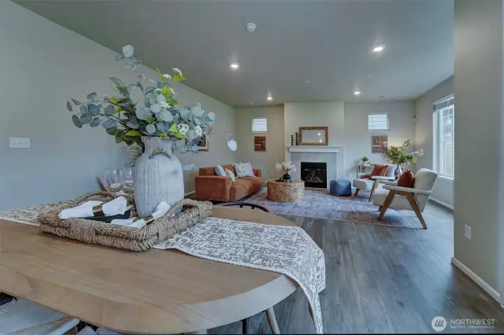 Open living/dining/kitchen for easy entertaining or sight lines throughout the space.