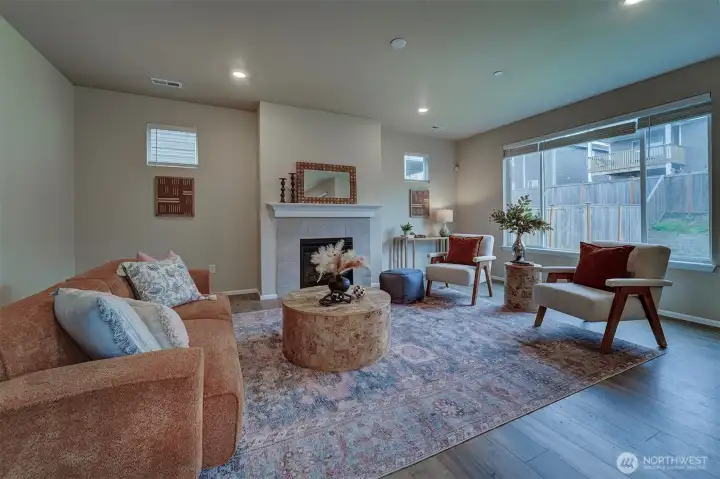 Large living space with gas fireplace, large windows that again, brings in natural light. The LED's are just a bonus.