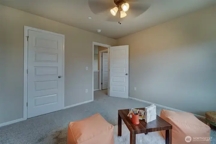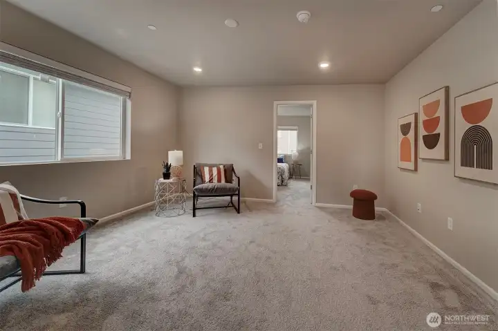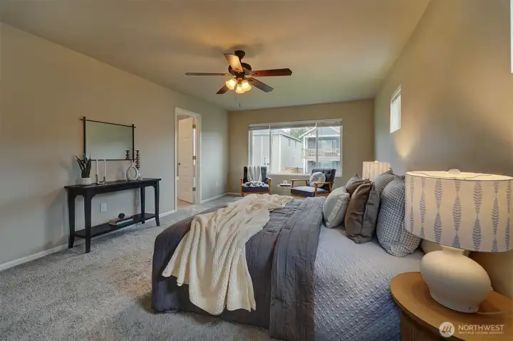 Primary bedroom is very spacious - totally fit for a king size bed + dressers and a sitting area.