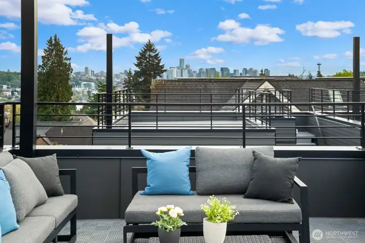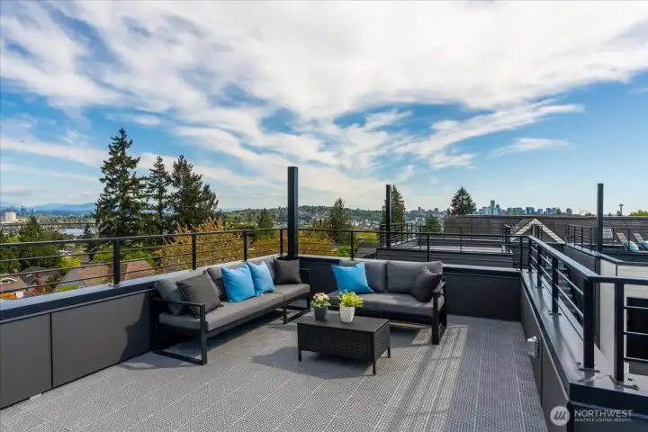 On a clear, this rooftop is hard to beat. Views of the Cascades, Olympics, Space Needle and peek-a-boo views of Lake Union, Lake WA, & Rainier.
