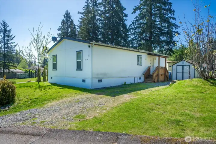 Well-kept 2016 Fleetwood home in the desirable Lake Tapps area, just a short walk to the lake. This inviting open-concept layout features a spacious kitchen that flows seamlessly into the living area, creating a comfortable space for everyday living and entertaining. The home offers 3 bedrooms with walk-in closets and 2 baths, along with upgraded appliances, rounded corners, and crown molding that add a refined touch throughout. Enjoy morning coffee or unwind on the large front deck overlooking trees and landscaped surroundings, while a storage shed off the back porch provides added functionality. Ideally located near Lakeland Town Center, top-rated Dieringer schools, and with convenient access to freeways, this home is also just minutes from Auburn and Sumner train stations. Park approval is required before offer; park allows up to four occupants per home/septic. No age restrictions and no dogs.