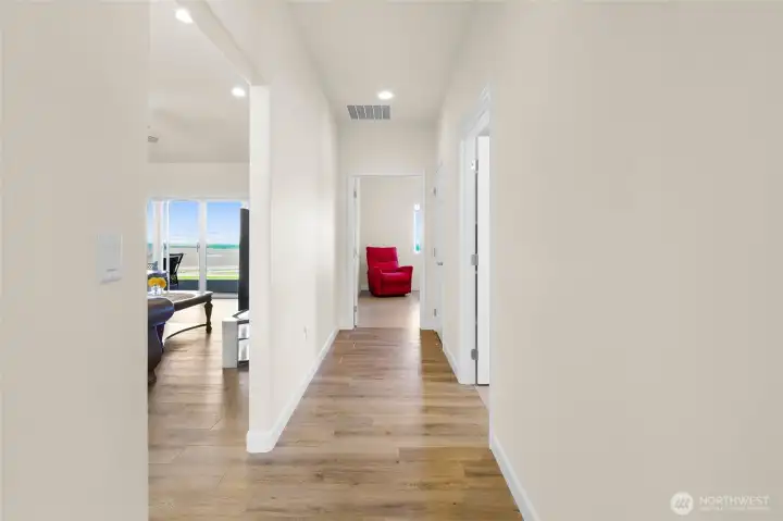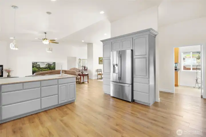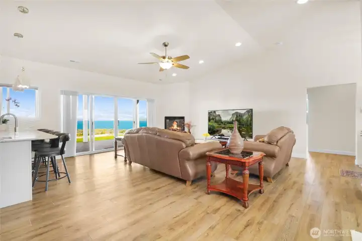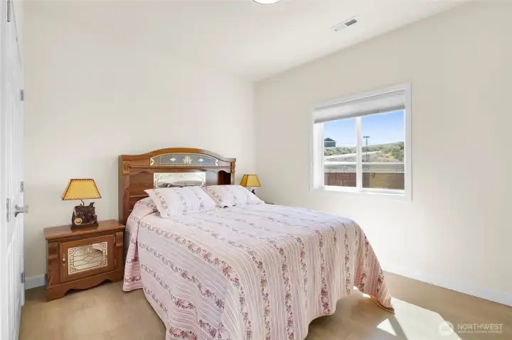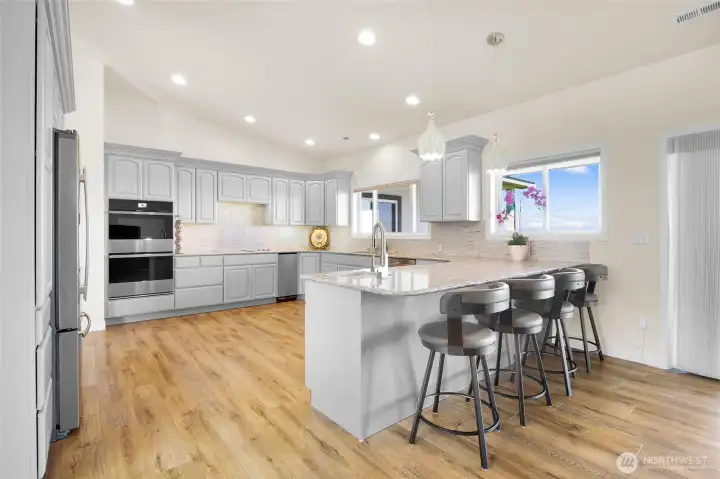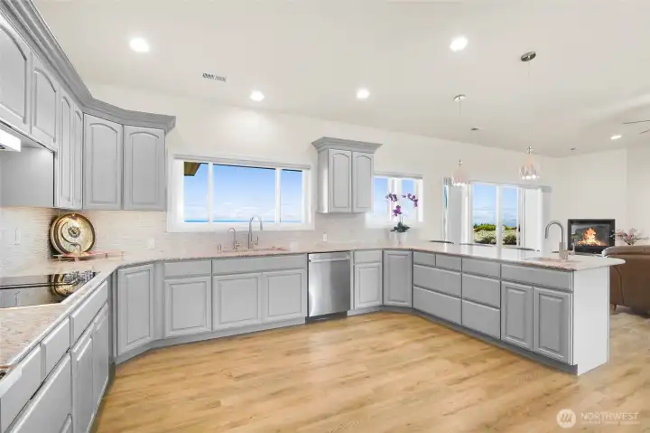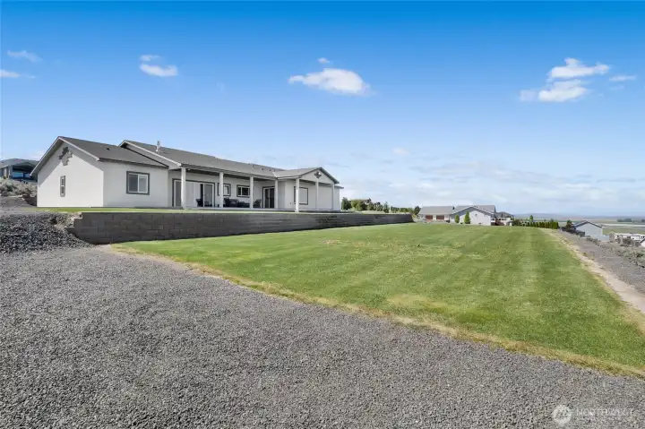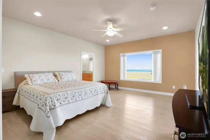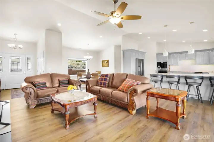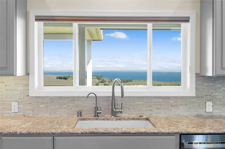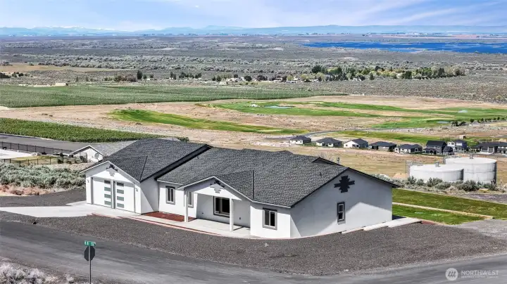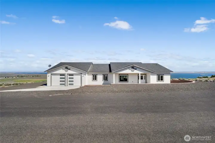 Perched at the top of the hill in a desirable custom home community, this 2020-built stunner offers truly unobstructed, breathtaking water views that steal the show from nearly every room. Set on just over an acre, this 3 bed, 2.5 bath, 2,264 sq ft home blends quality craftsmanship with elevated comfort. Vaulted ceilings and expansive windows flood the home with natural light, enhanced by custom blinds throughout, highlighting the seamless flow and durable LVP flooring. The custom kitchen is designed to impress, featuring premium JennAir appliances (included), abundant cabinetry, and a large island perfect for gathering. The spacious primary suite offers a huge walk-in closet, a luxurious tiled walk-in shower, and a walk-in soaking tub—creating a true private retreat. Cozy up to the propane fireplace or step outside to the massive covered back patio—ideal for soaking in sunsets and endless panoramic views. The property includes underground sprinklers, established grass, retaining walls, and plenty of space to create your dream shop or outdoor oasis. Finished deep garage with water softener adds to the thoughtful upgrades. Located near golf, fishing, hunting, boating, water sports, and local dining—this is Eastern Washington living at its finest, where lifestyle meets scenery and quality.