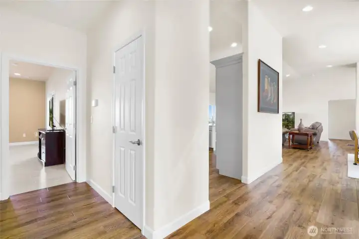 A welcoming entry that introduces the home’s light-filled, thoughtfully designed interior.
